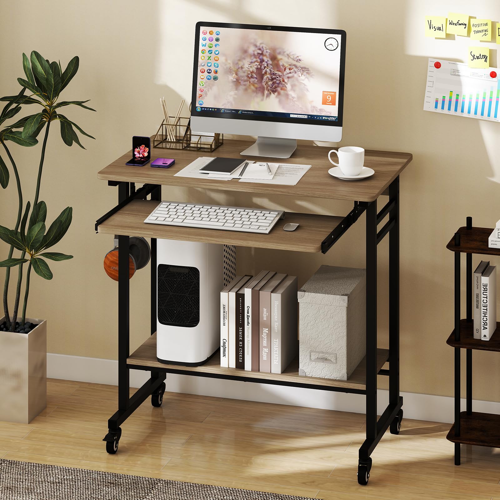 Tangkula Rolling Computer Desk Cart with Keyboard Tray