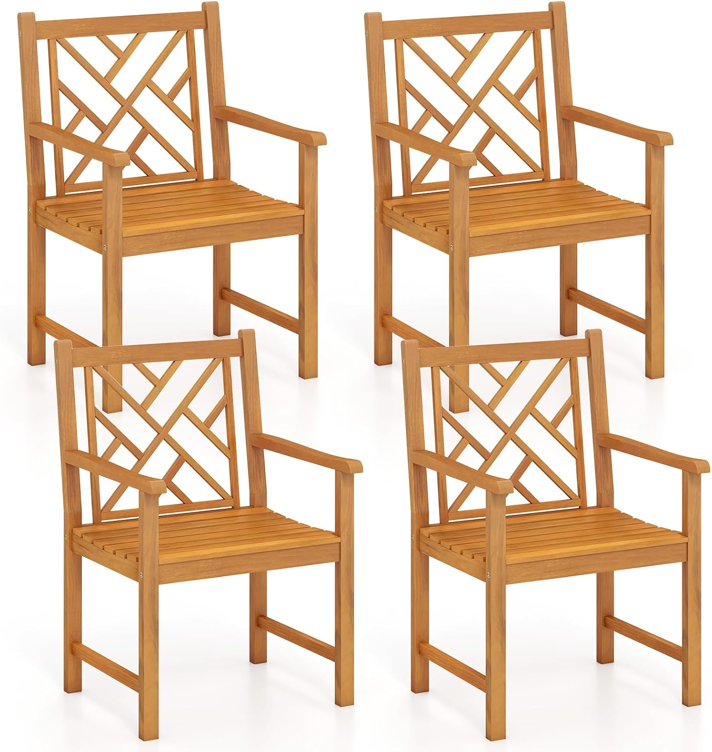 Made from high-strength acacia wood, these chairs with rounded edges features reinforced crossbars to support up to 400 lbs. The slatted design ensures breathability, while the natural finish is DIY paintable for personalized style. Perfect for patios, porches, or poolside relaxation, these acacia wood armchairs combine ergonomic comfort with long-lasting sturdiness, transforming any backyard into a cozy retreat.