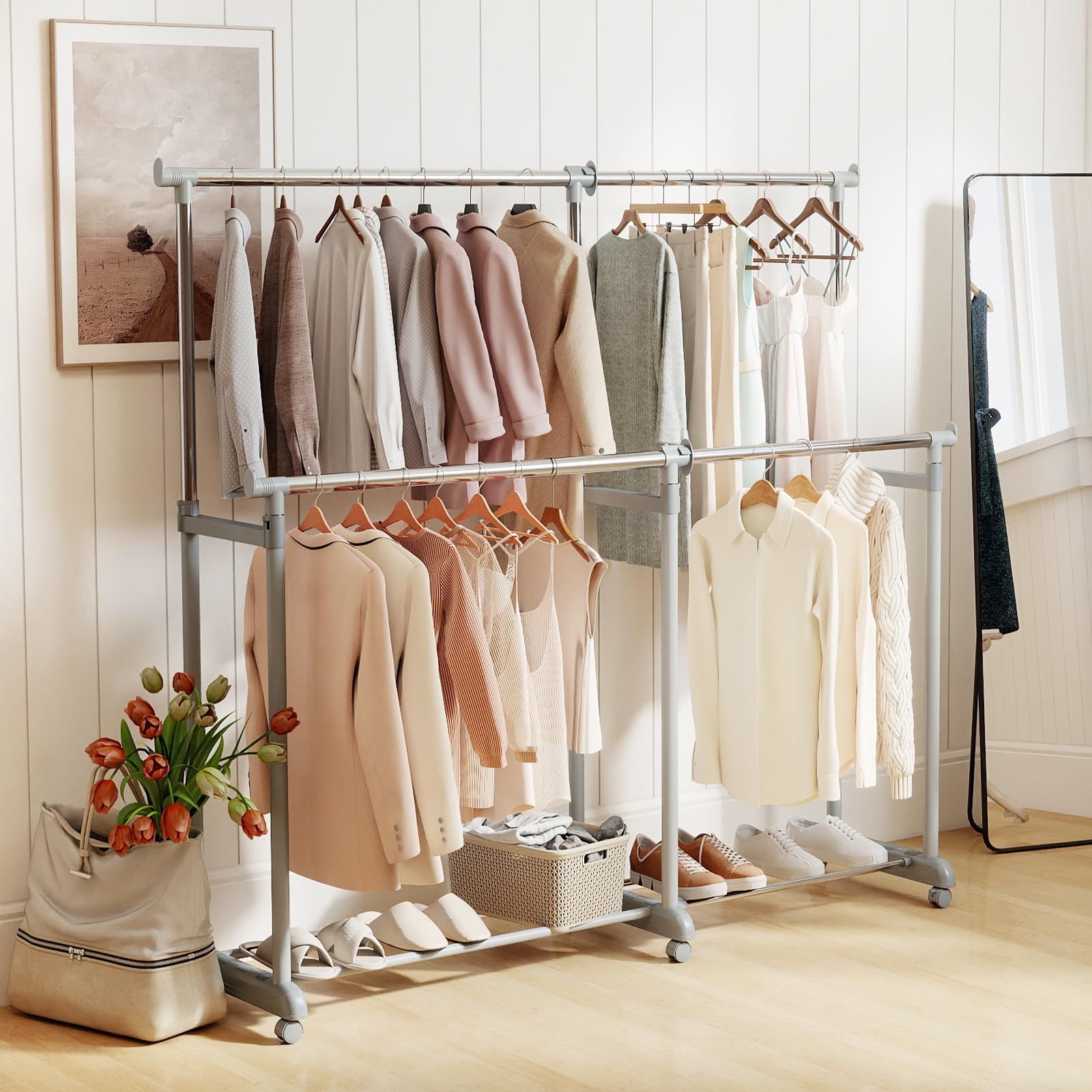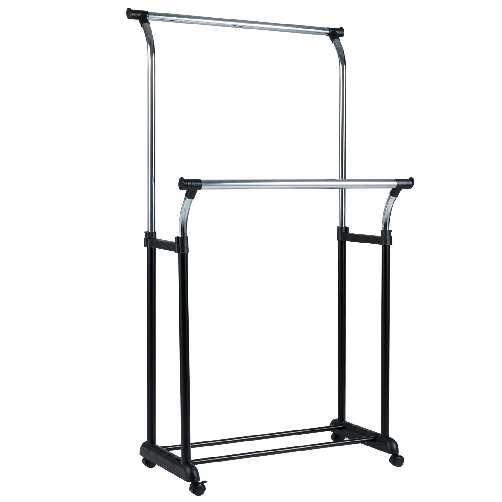 Tangkula Double Rods Clothes Rack with Adjustable Height and Lockable Wheels