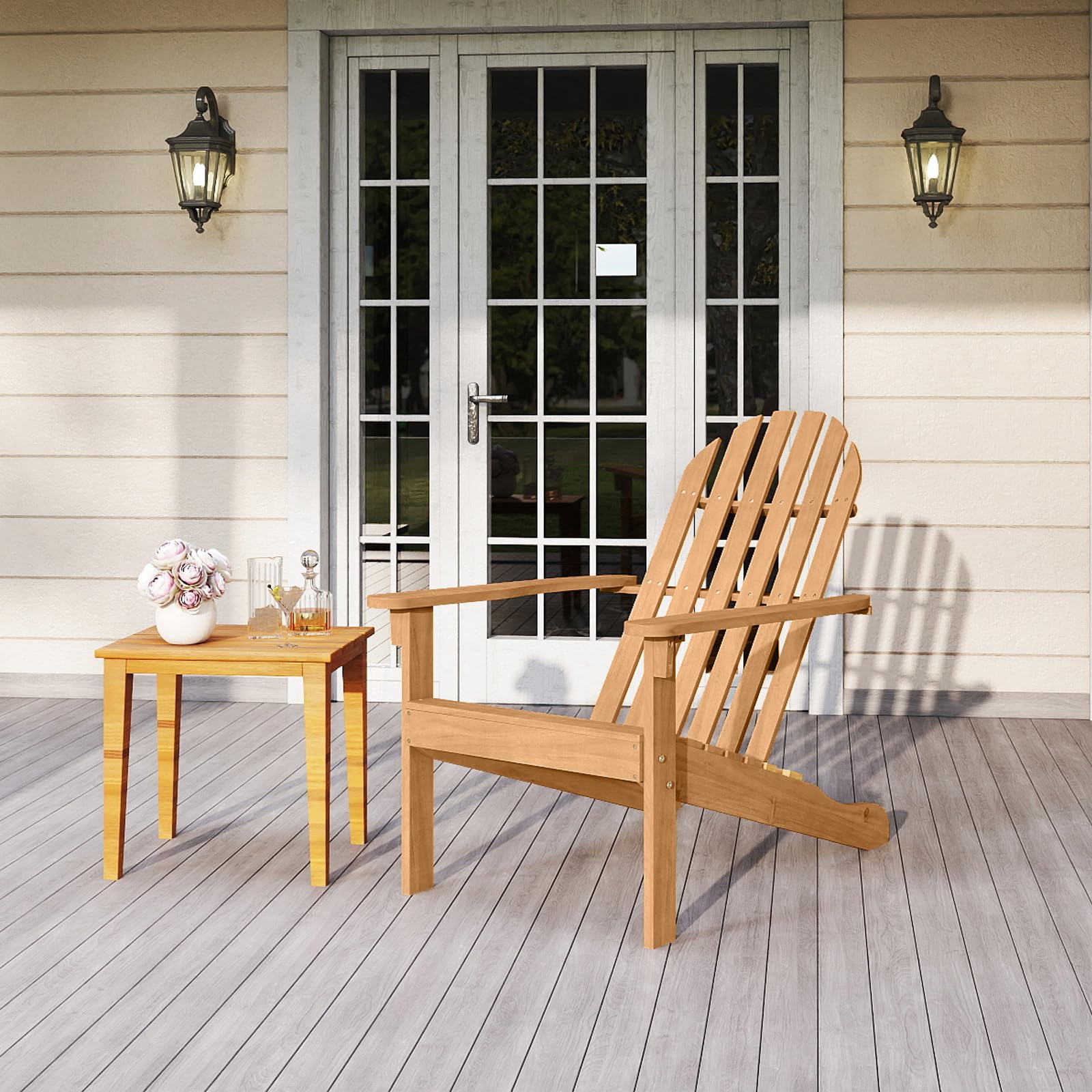 Tangkula Acacia Wood Patio Adirondack Chair with Inclined Seat and High Backrest for Porch Poolside