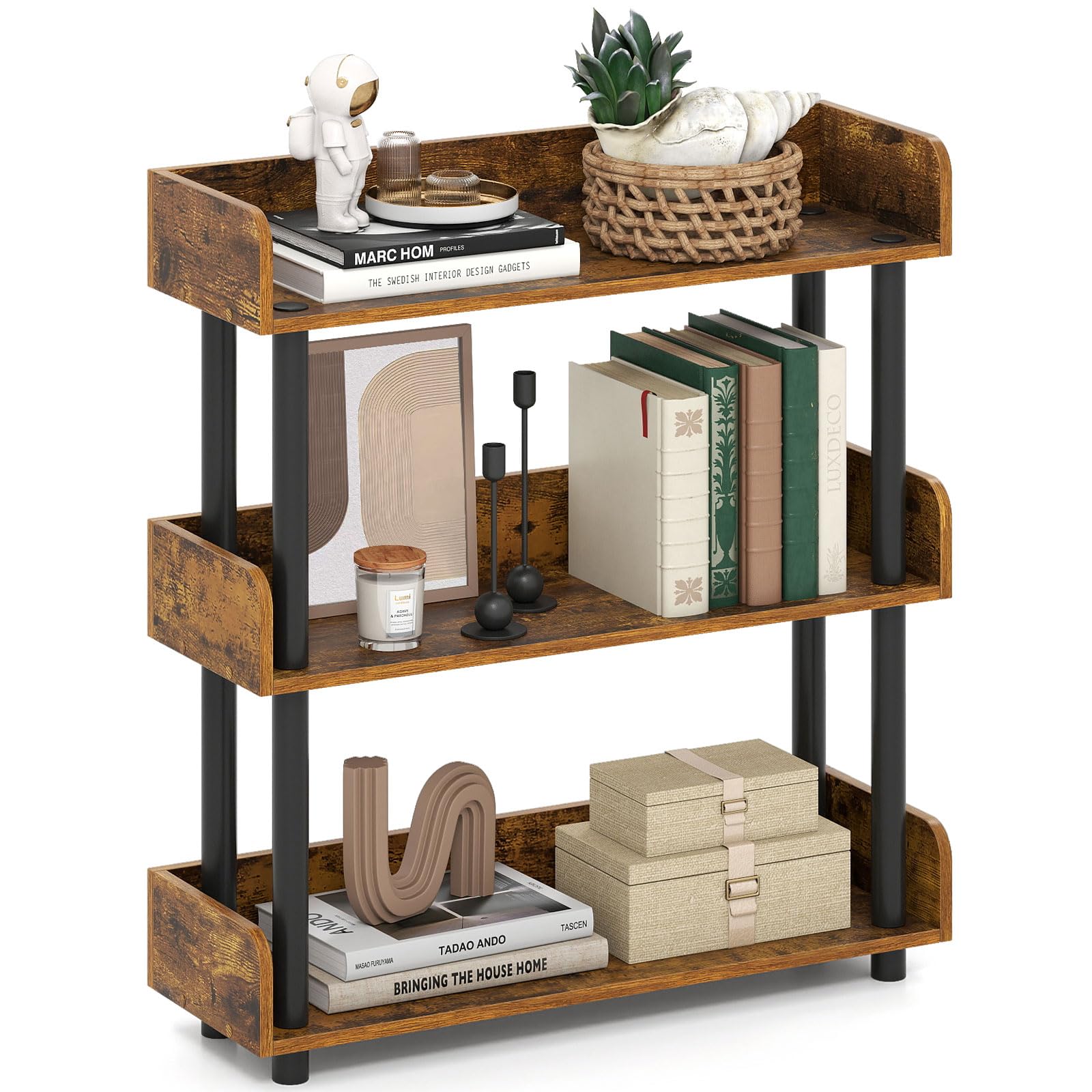 The bookcase and shelves in Tangkula are made of durable and steady material, say, bamboo, log, steel, and the like. There is no need to worry about quality issues. The design of the shelve is fashionable and suits all kinds of renovation styles. Hope you can find what you like in Tangkula!