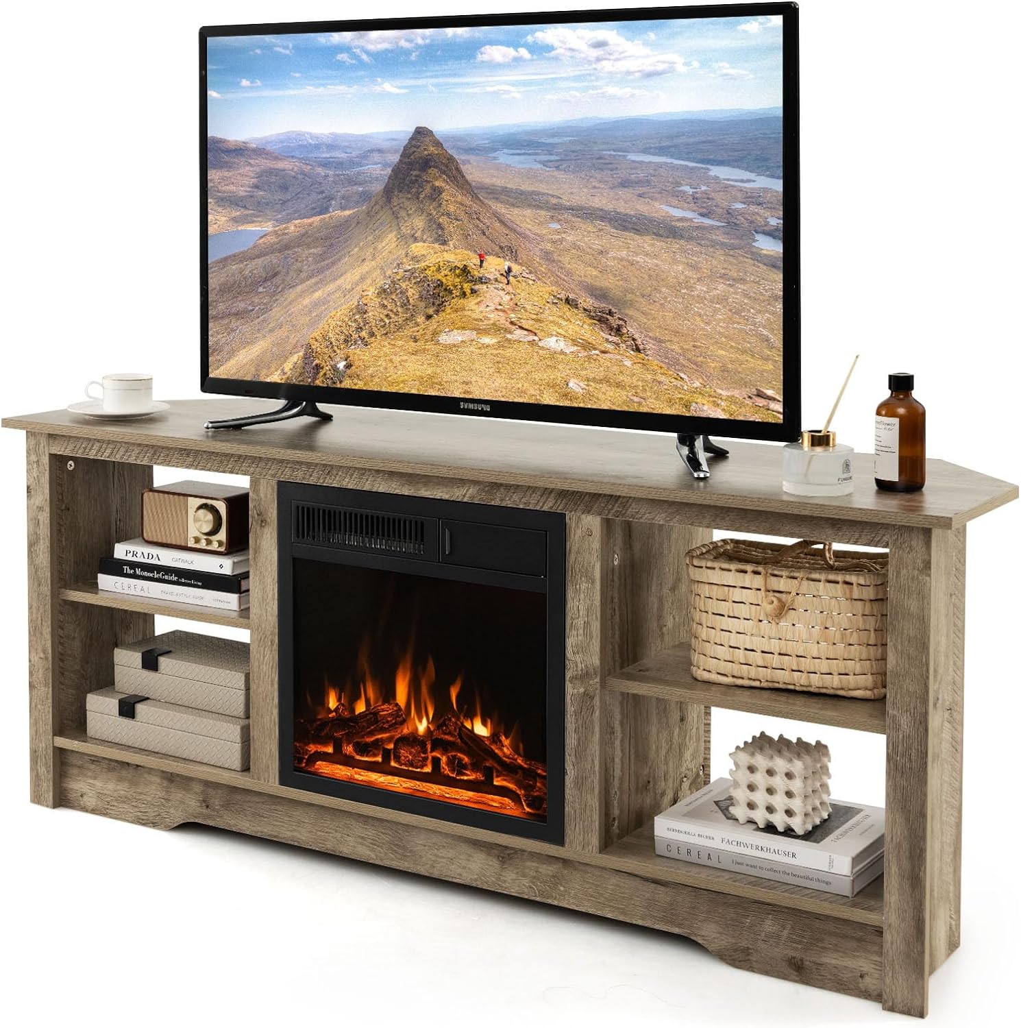 - 2-in-1 TV Stand with Fireplace: Our TV stand stands out with its stylish retro design, which can be used as a TV stand as well as a fireplace cabinet.