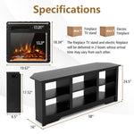 Our outstanding 2-in-1 TV cabinet is perfect for any style of living room! Boasting an impressive array of side storage shelves, it offers ample storage space for all your audio and video equipment. What’s more, the shelves are 3-position adjustable (2.5” for each level). Additionally, its generous tabletop cater perfectly to TVs up to 65”. More, the 18” electric fireplace heater offers a cozy atmosphere with flickering flames and adjustable heat settings. With a heat output of 5100BTU, it covers up to a 400 sq ft heating range. The TV console table is constructed from premium thick boards that guarantee exceptional load-bearing capacity and unmatched longevity.