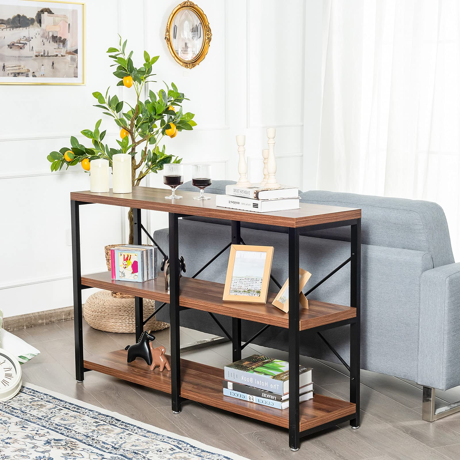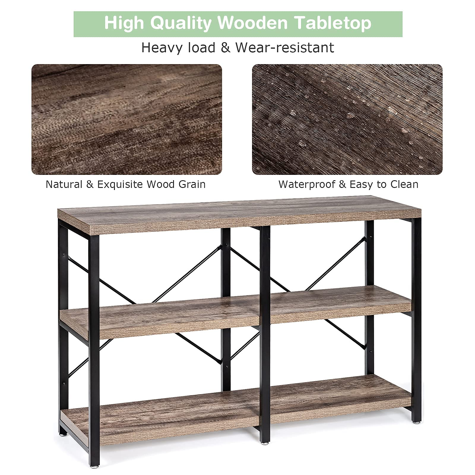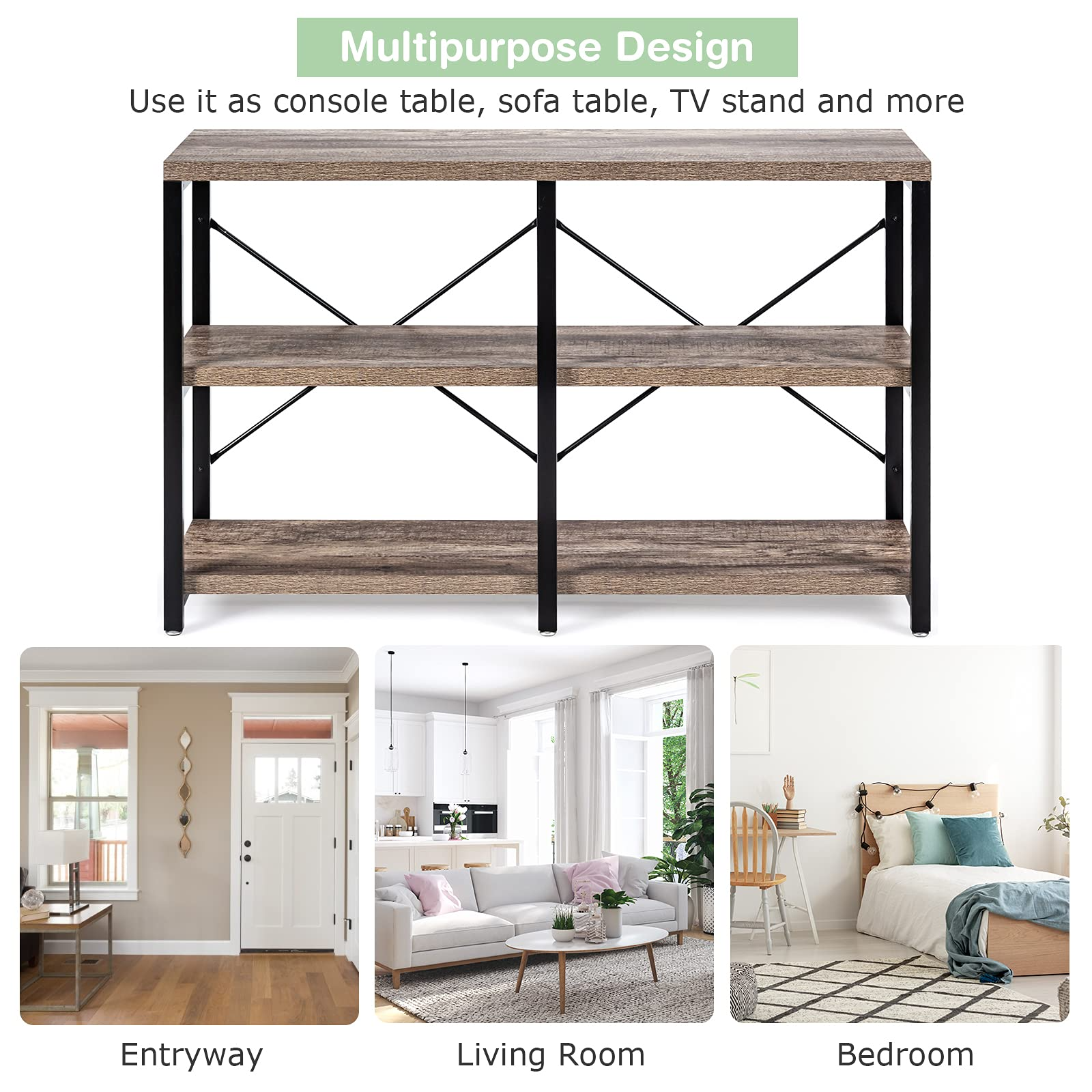 - Practical & Multipurpose Design This 3-tier console table can meet your multiple storage needs while it is also ideal for decoration. Thanks to its multifunctional design, this table can be used as an entry table for the hallway, an industrial bookcase or sofa table for the home or even a TV console stand for the living room and bedroom.