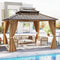 Experience the perfect outdoor retreat with our 16 x 12 FT gazebo. It boasts a large capacity and a double roof design, providing ample shade and shelter from rain and sun. The metal roof and anti-deform metal plates ensure durability, while the rustproof aluminum columns and beams offer stability. Each leg has 4 ground nails for extra support. Besides, the gazebo comes with practical curtains and netting. Use the waterproof polyester fabric curtains and mesh netting to create a 360-degree view, a breathable mesh curtain, or a fully enclosed space as needed. Its heavy-duty structure and convenient roof hooks add to its functionality. The U-shaped and J-shaped hooks allow for easy hanging of a ceiling fan and lamps. Hence, this gazebo is a versatile and comfortable choice for your outdoor activities.