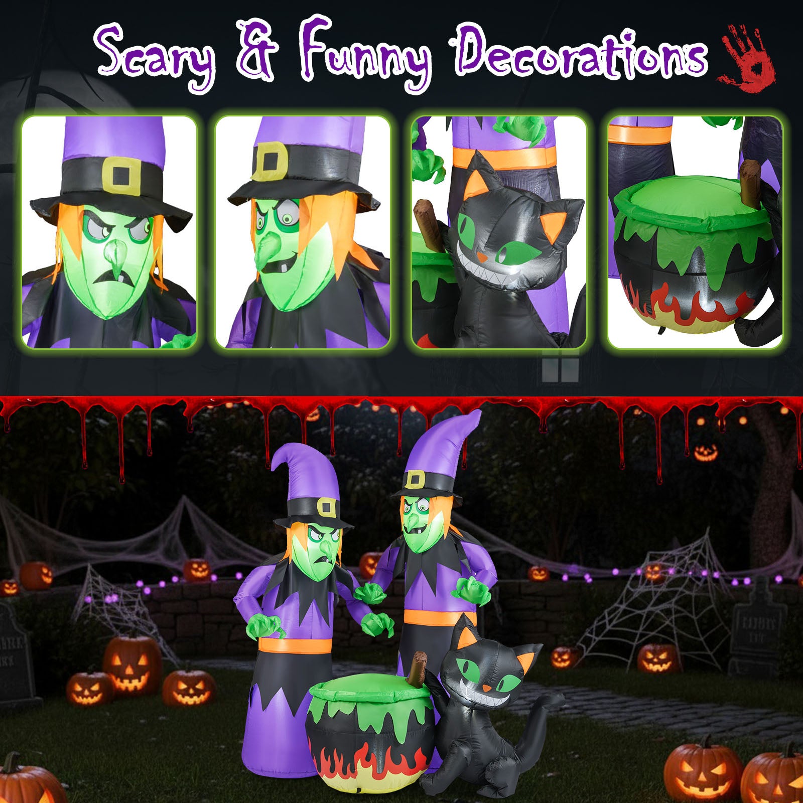 - 【6 Ft Scary Witches】This scary and funny Halloween decoration features 2 witches looming over a cauldron, with a smirking black cat by their side. Standing 6 ft tall for maximum impact, the trio makes a perfect addition to porches, patios, parties, or any indoor space.