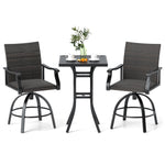 - Wide Application: This outdoor bar set includes 2 swivel chairs (29"L x 24.5"W x 45"H) and 1 bar table (25.5"L x 25.5"W x 38.5"H), ideal for your porch, patio, garden, or backyard.