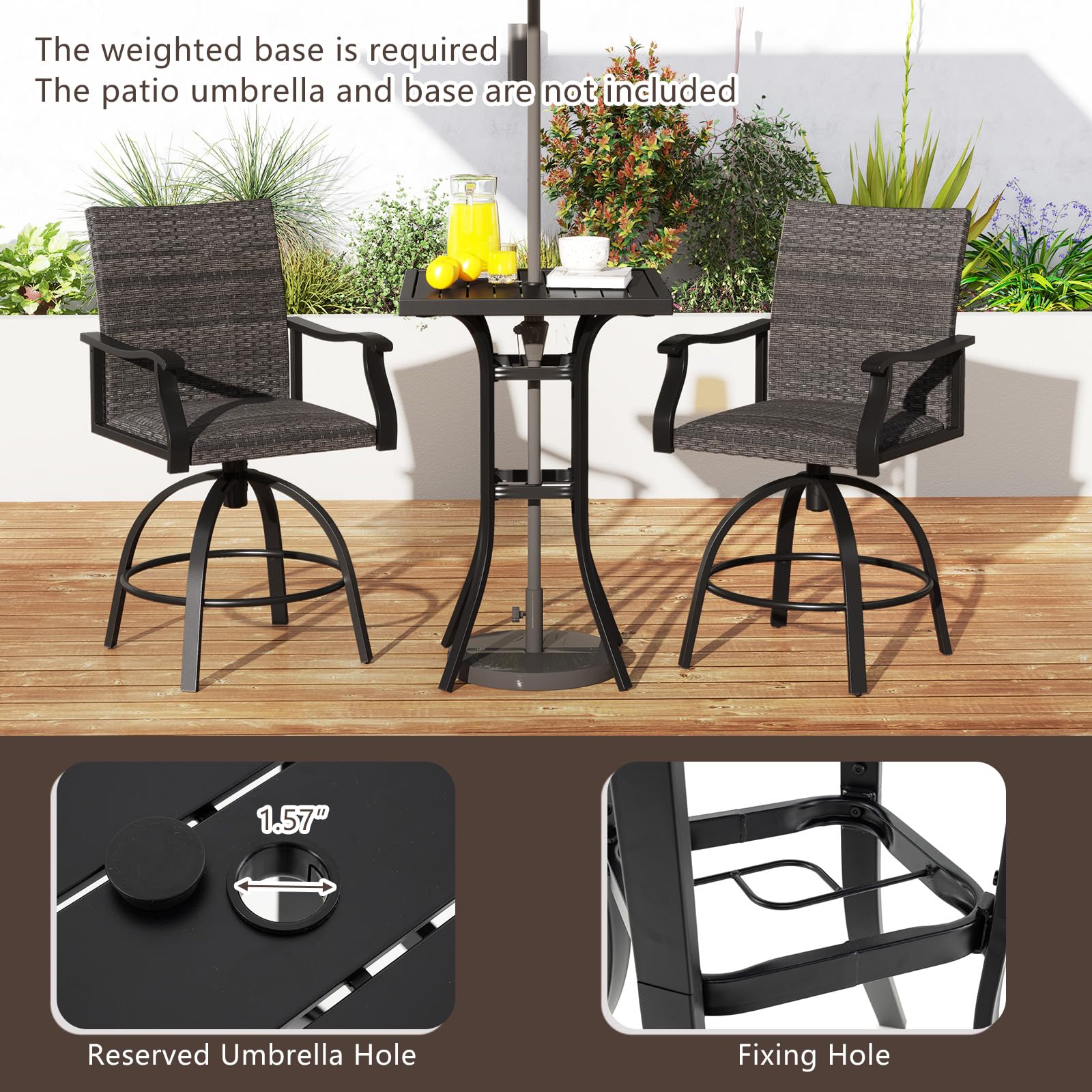 - Comfort & Convenience: The backrests and seats of this patio swivel bar set are padded with soft foams, which provide you with a comfortable seating experience. Plus, the foams are quick-drying for easy maintenance and extended durability.