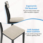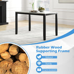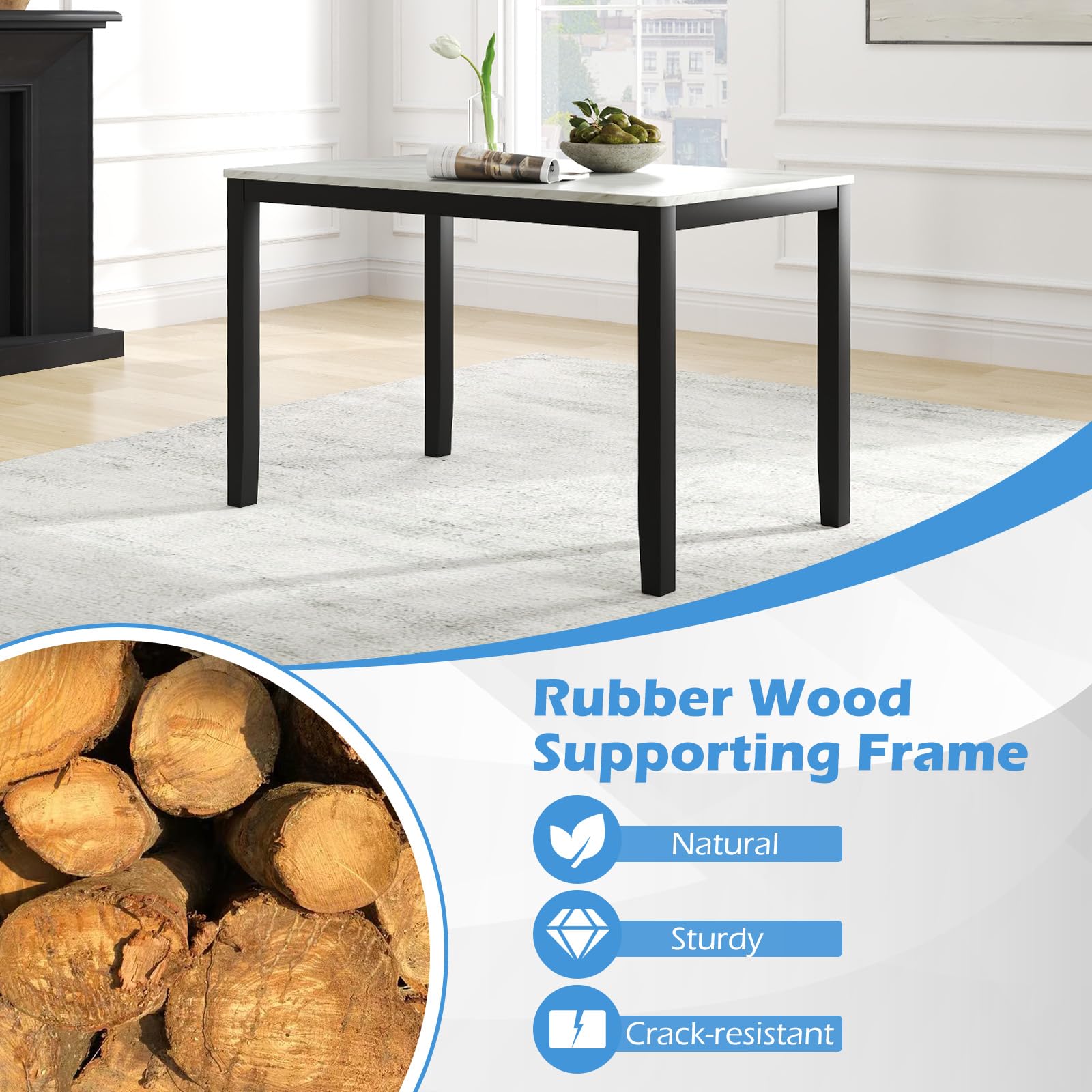 If you seek a high-quality dining experience at home, our dining table set is the perfect choice. This 5-piece set includes a spacious rectangular table and 4 upholstered chairs, ideal for family gatherings and dinners. The rubber wood legs provide sturdy support, while the easy-to-clean faux marble tabletop offers ample space for your meals and dishes. Additionally, the chairs can be conveniently stored under the table, making it suitable for small spaces. Enjoy the comfort of padded chairs with wear-resistant fabric and the stability of the sturdy frame and reliable dimensions. Perfect for the living room, dining room, or restaurant setting.