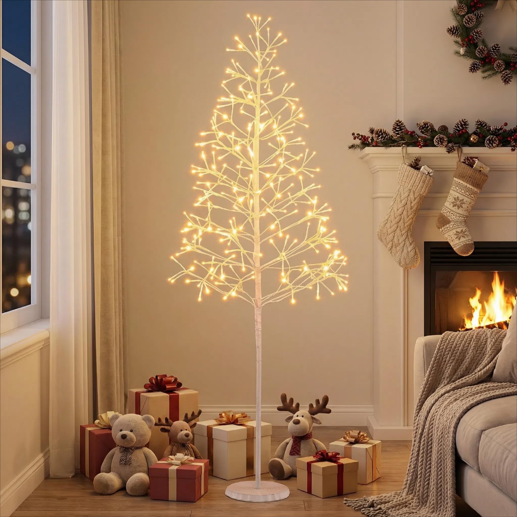 Tangkula Christmas Outdoor Lighted Birch Tree Pre-lit Decor with Warm White Light LED Lights