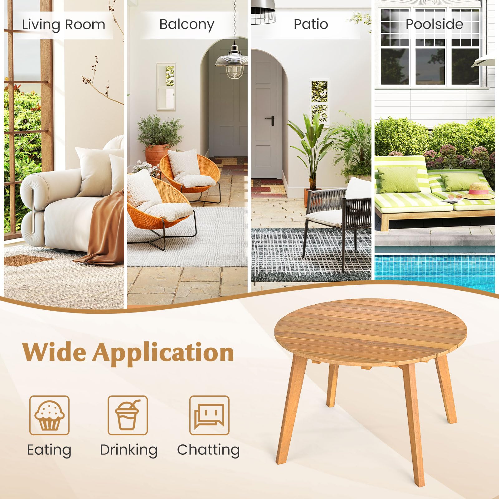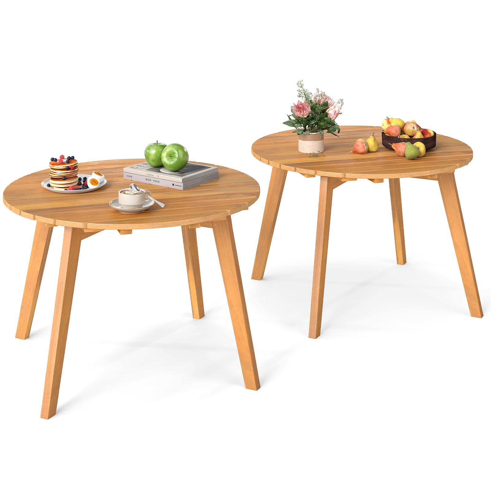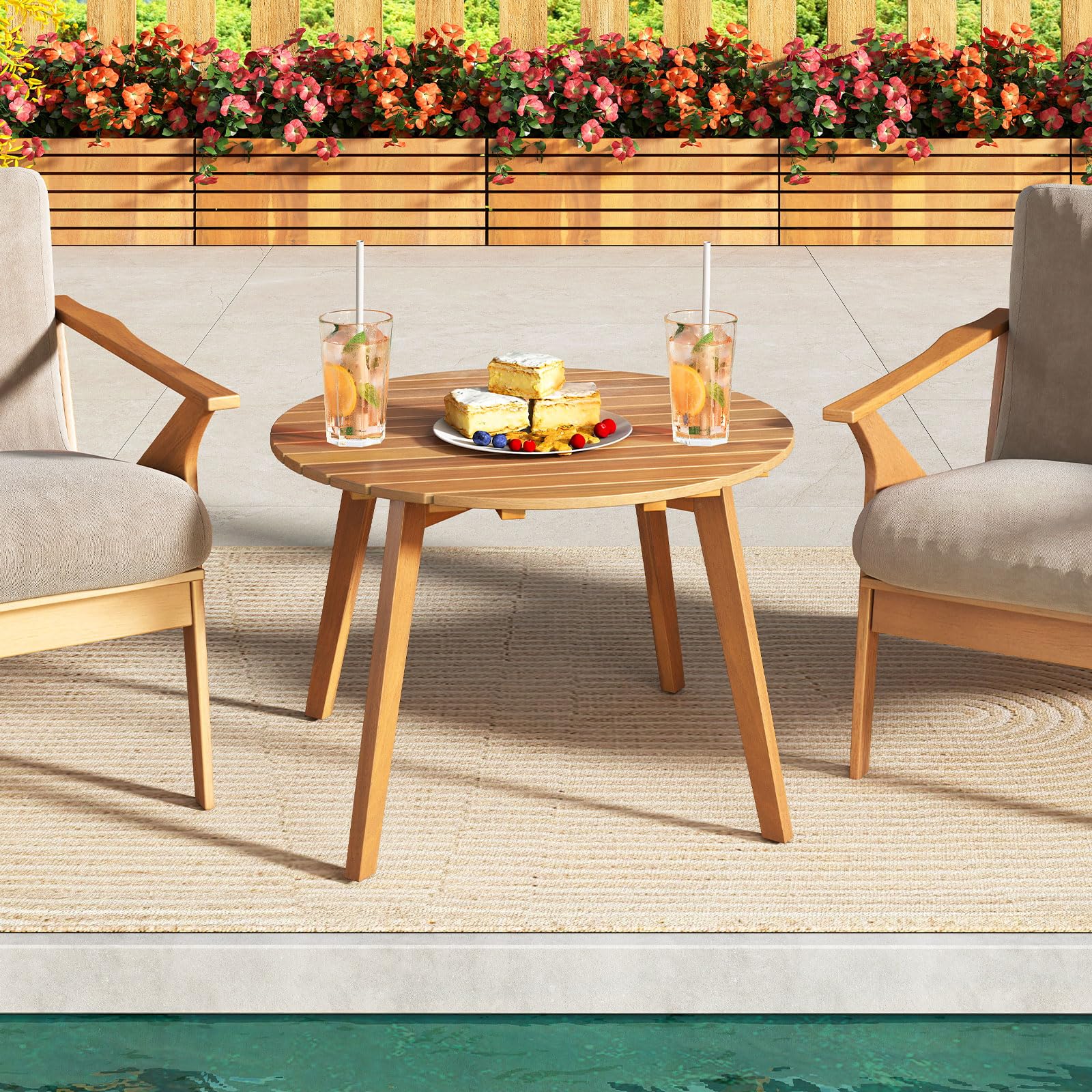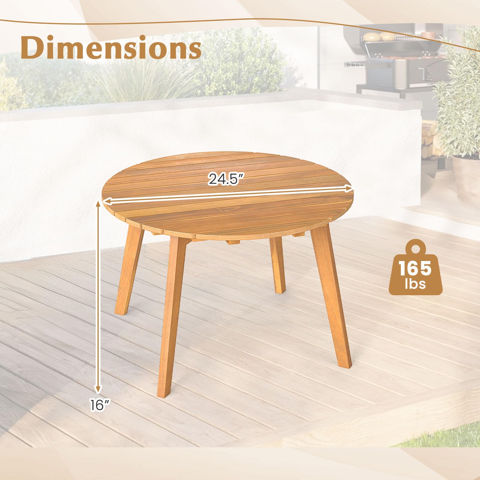 Tangkula 24.5 Inch Outdoor Acacia Wood Round Accent Bistro Patio Table with Slatted Tabletop