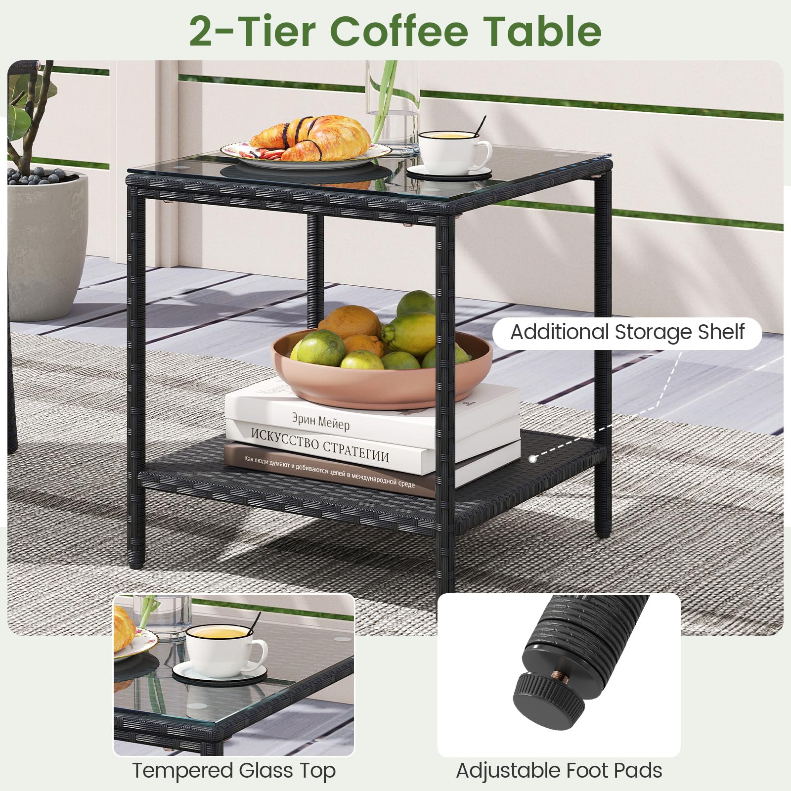 2-tier coffee table for easy access to your outdoor essentials