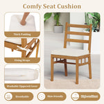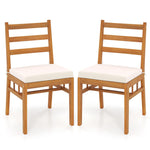 Sophisticate your outdoor dining experience with these elegantly crafted acacia wood dining patio chairs. Built to last with solid wood and reinforced by sturdy H-shaped crossbars, each chair is a testament to durability and style. Ease into the thick plush seat cushions, designed for ultimate comfort during lengthy sit-downs. These cushions are not only padded but also come with a practical and washable cover that easily zips off, making cleanup a breeze. The chairs are thoughtfully designed with curved backs and wide slatted seats, promoting both comfort and a healthy posture. Their rustic charm and robust construction makes them an ideal choice for any setting, effortlessly enhancing your garden, patio, or indoor dining area with a blend of traditional and contemporary appeal!