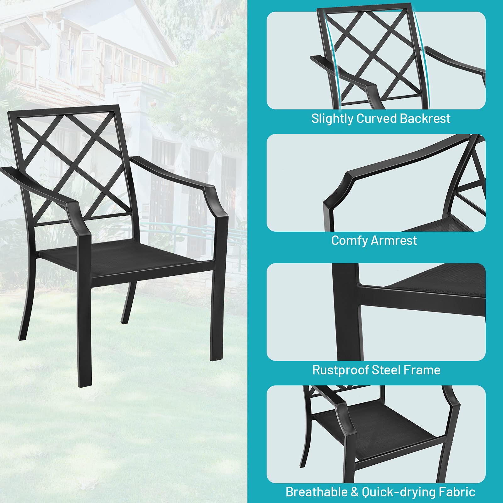 4-Piece Patio Dining Chairs, No Assembly Needs, Cushioned Armchairs with Anti-Rust Steel Frame