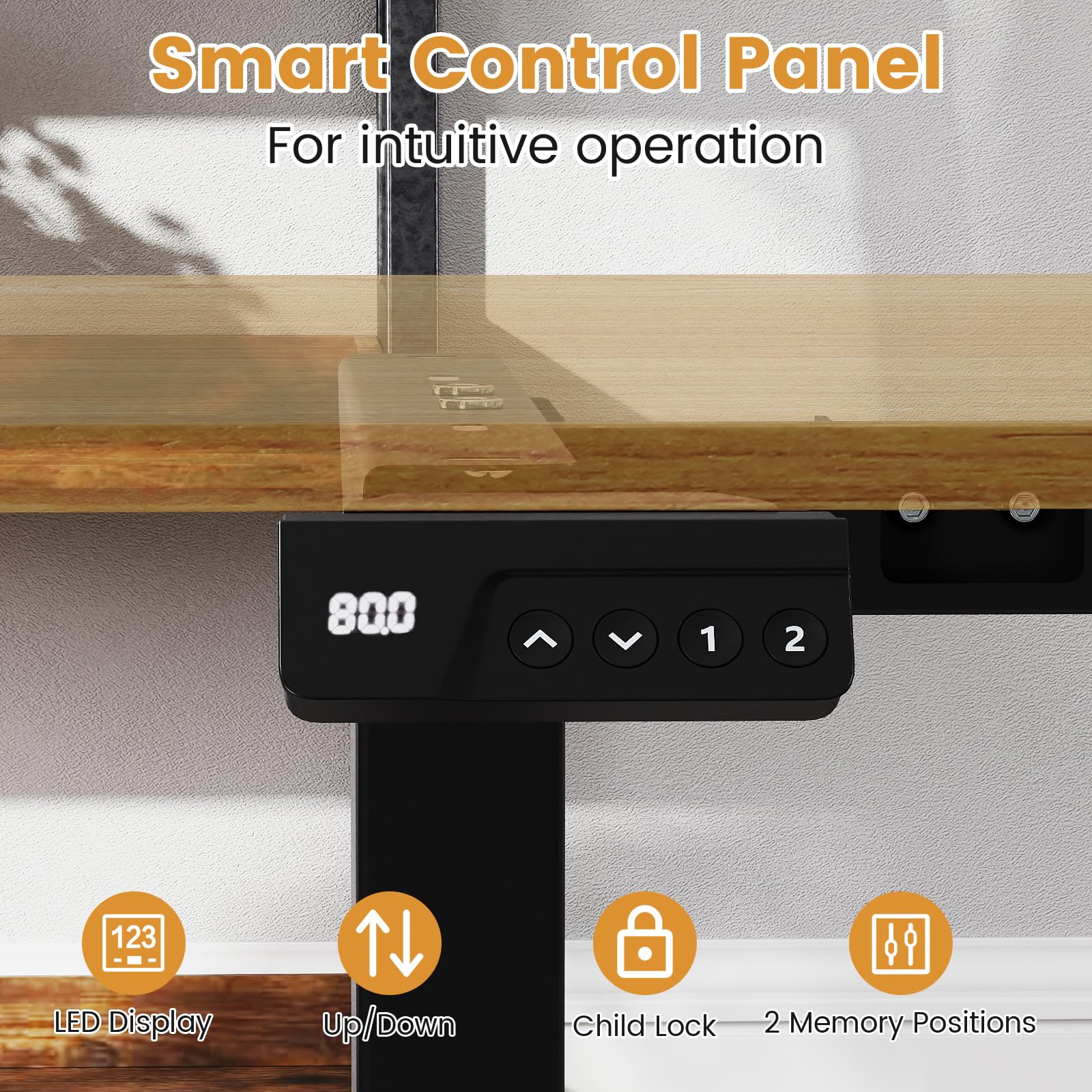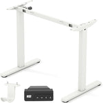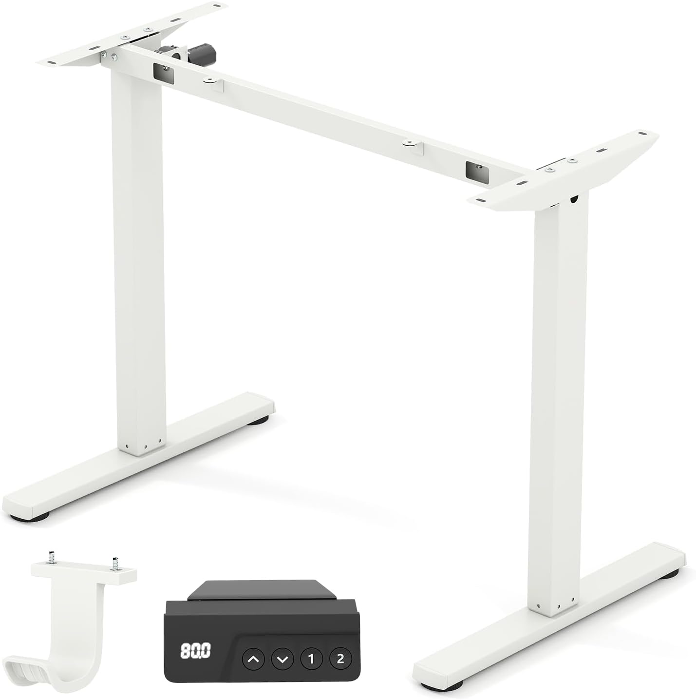 Transform your workspace with our versatile standing desk frame! Featuring an effortless height adjustment from 27.5" to a towering 45.5", this desk base moves as quickly as you do, ensuring seamless transitions from sitting to standing. Engage your body and mind with a workspace that shifts to meet your needs. Silence is golden with our ultra-quiet motor, ensuring your focus never wavers during important calls. The smart LED controller locks settings away from curious hands and remembers your ideal heights at the touch of a button! Crafted for utmost stability, it robustly holds up to 155 lbs. Customize it to reflect your personal style with a range of 40"-48" top options (tabletop is not included)and declutter with an integrated hanging hook. Elevate your workday today!
