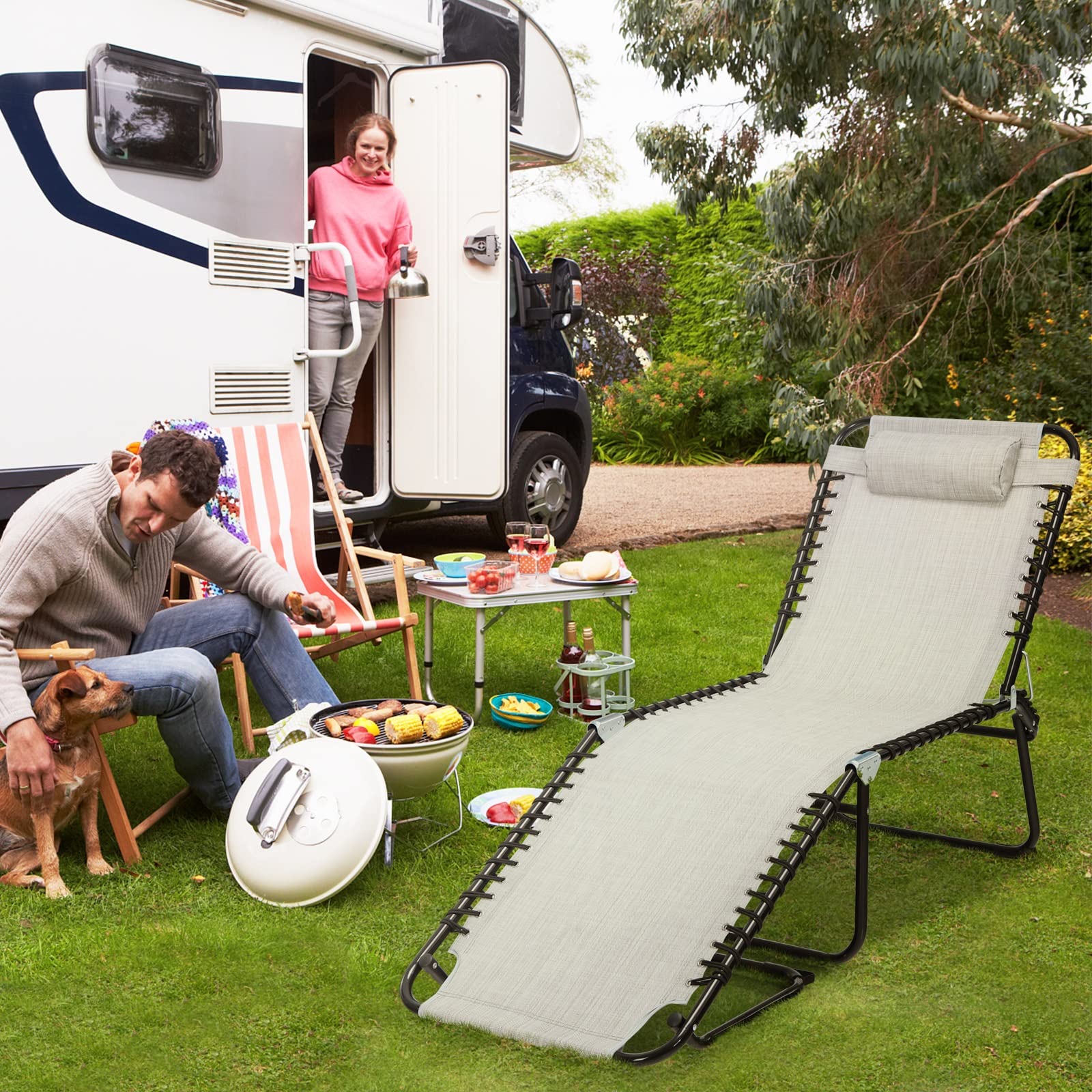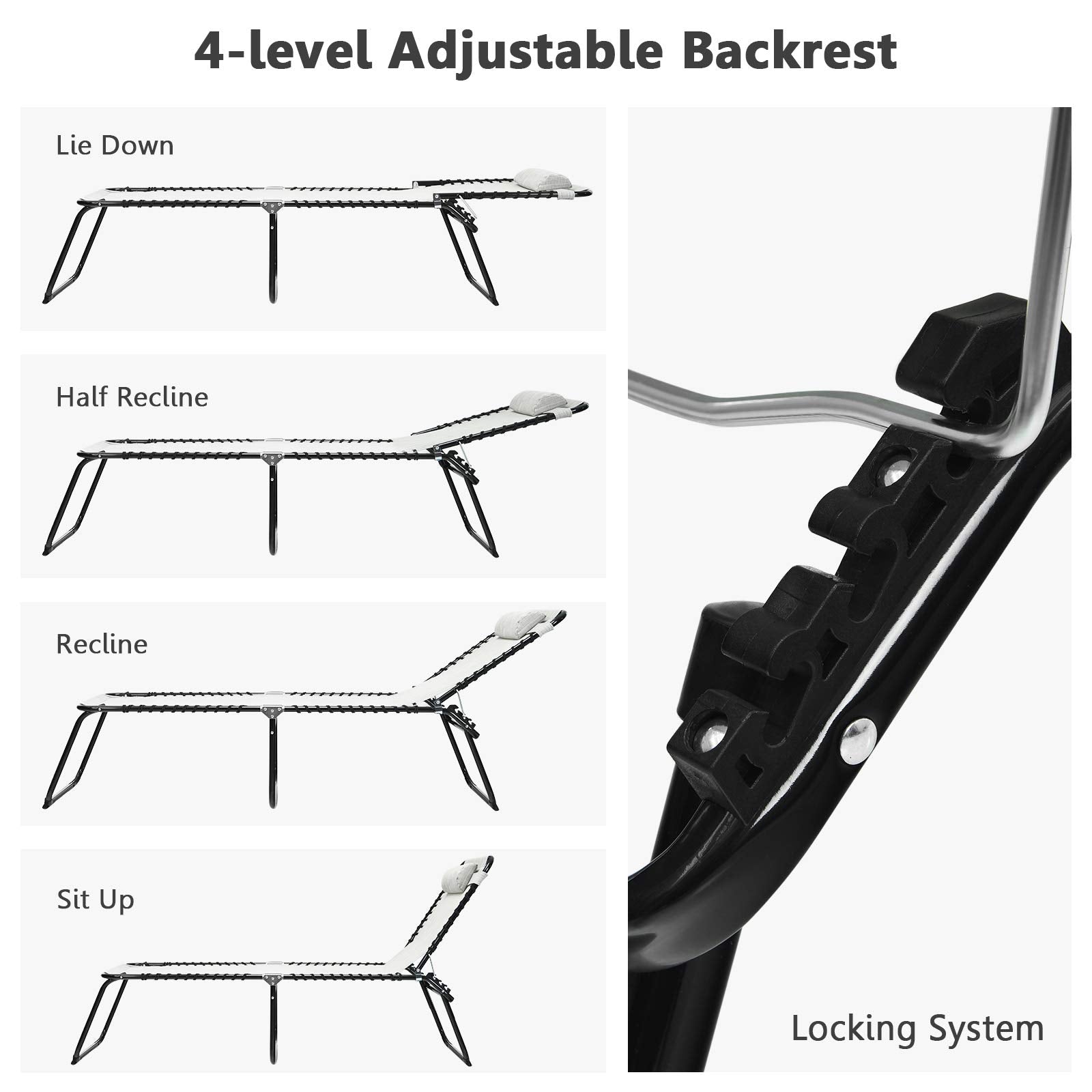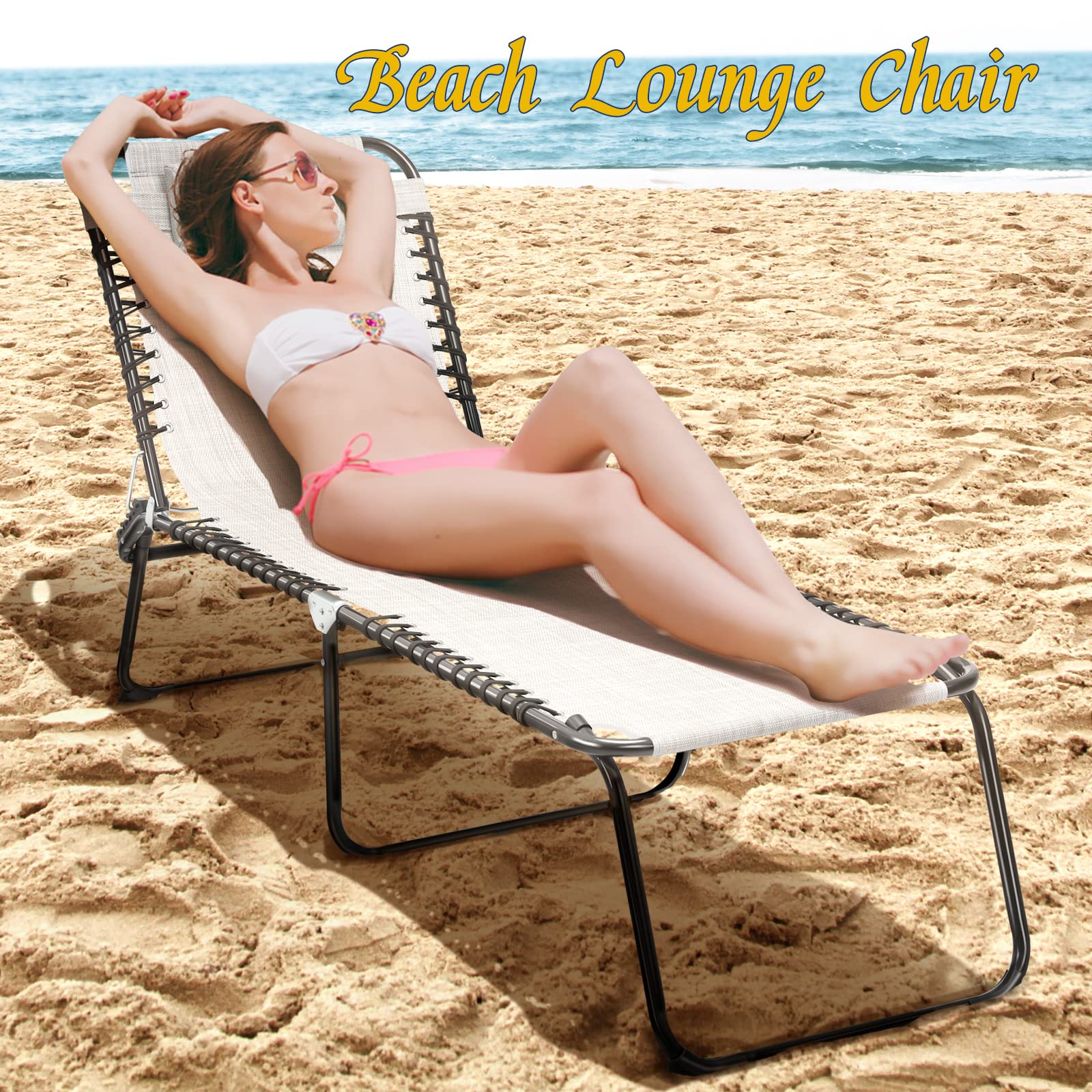Do you want to enjoy the sunshine and breeze on the beach or patio? Our comfortable adjustable beach lounge chair can bring you unparalleled enjoyment. Our chair is based on the concept of lasting enjoyment and convenience. The portable and foldable design is enough to take it anywhere and durable enough to withstand frequent use. The chaise lounges with a triangle locking system allow you to lock the chair in different positions. You can sit up, recline, or lay flat freely. Take it with you to enjoy the outdoor breeze and sunshine!