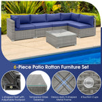 This 6-piece patio conversation sofa set is the perfect outdoor furniture set for those looking to create a comfortable and stylish gathering space in their backyard, poolside, or garden. The well-woven rattan design adds an elegant touch to any outdoor space, while also being durable enough to withstand daily use. And the sturdy metal frame offers strong support. Furthermore, the furniture set comes with elastic seat and back cushions to enhance comfort. And you can easily fetch drinks or snack with the convenient coffee table. Last but not least, the 6 pieces can be freely arranged as you need. Create lasting memories and enjoy the great outdoors with this exceptional patio set!