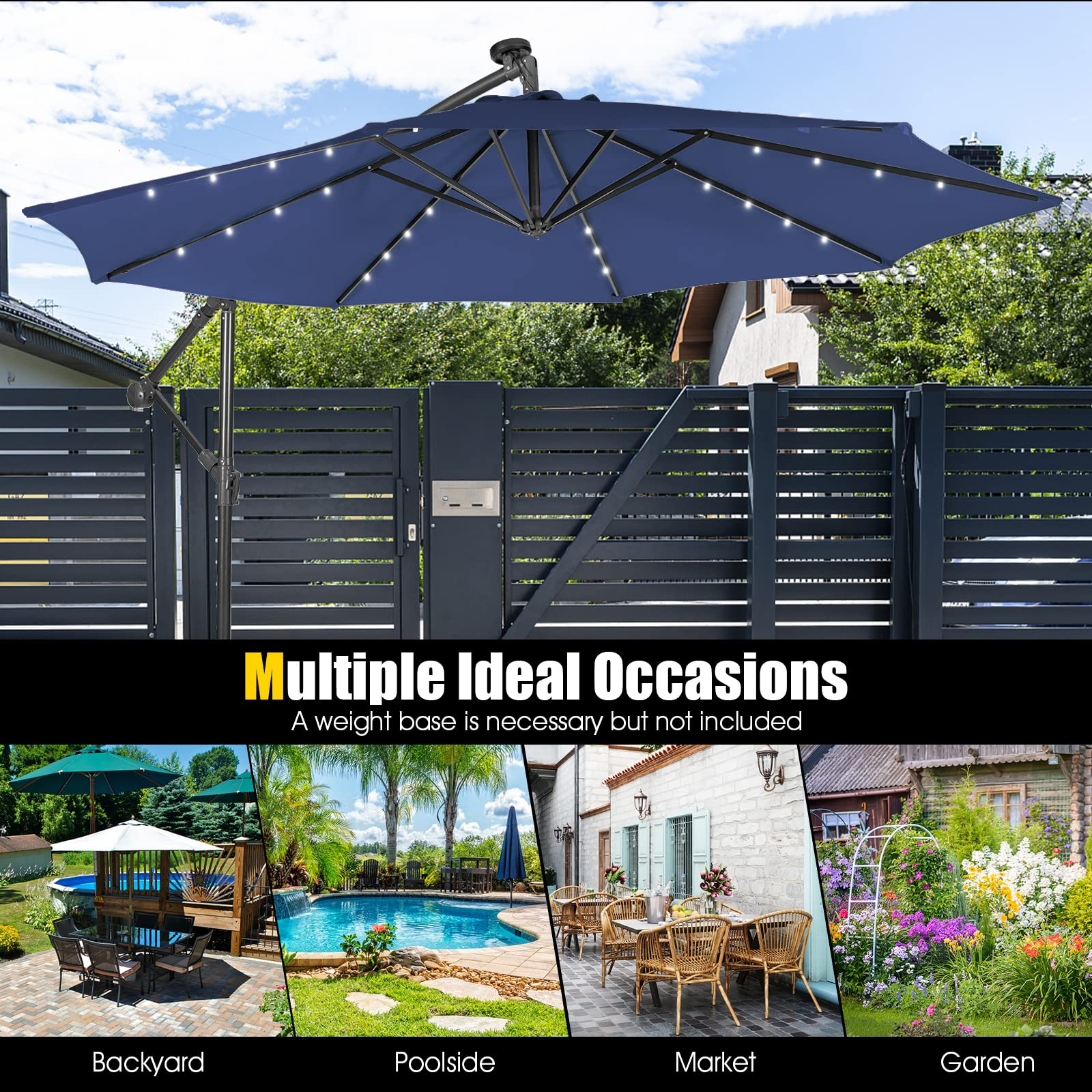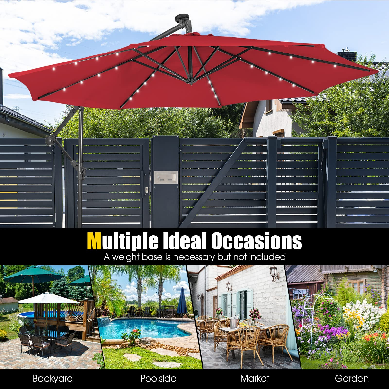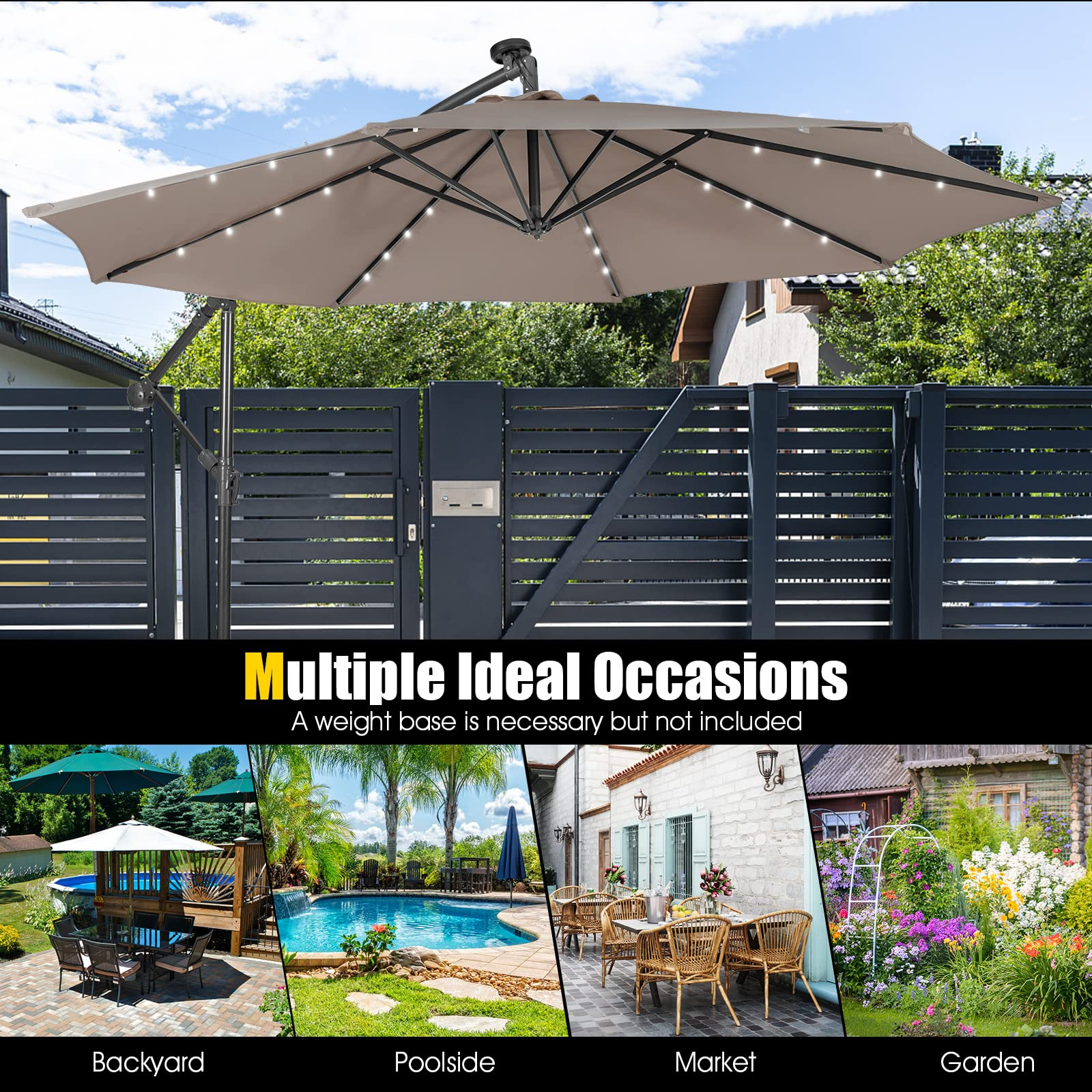 Tangkula 10 ft Cantilever Umbrella w/32 Solar-Powered LED Lights, Functional Tilting System & Hand-Crank Mechanism