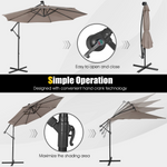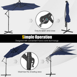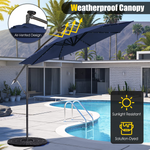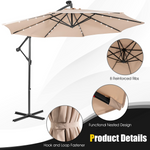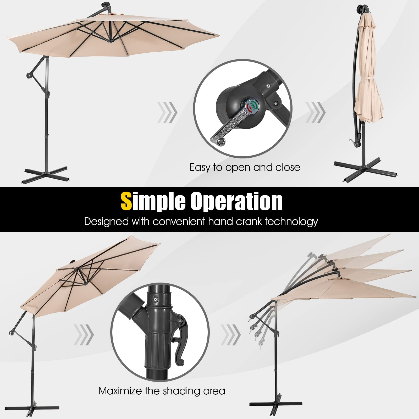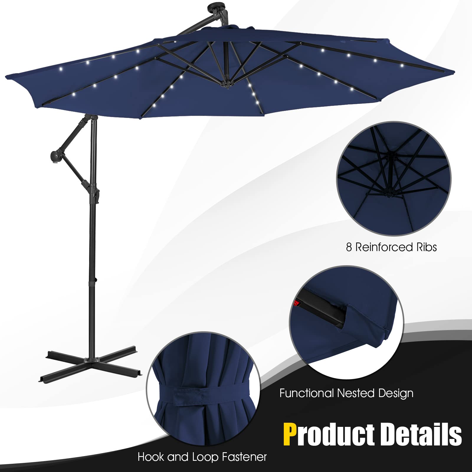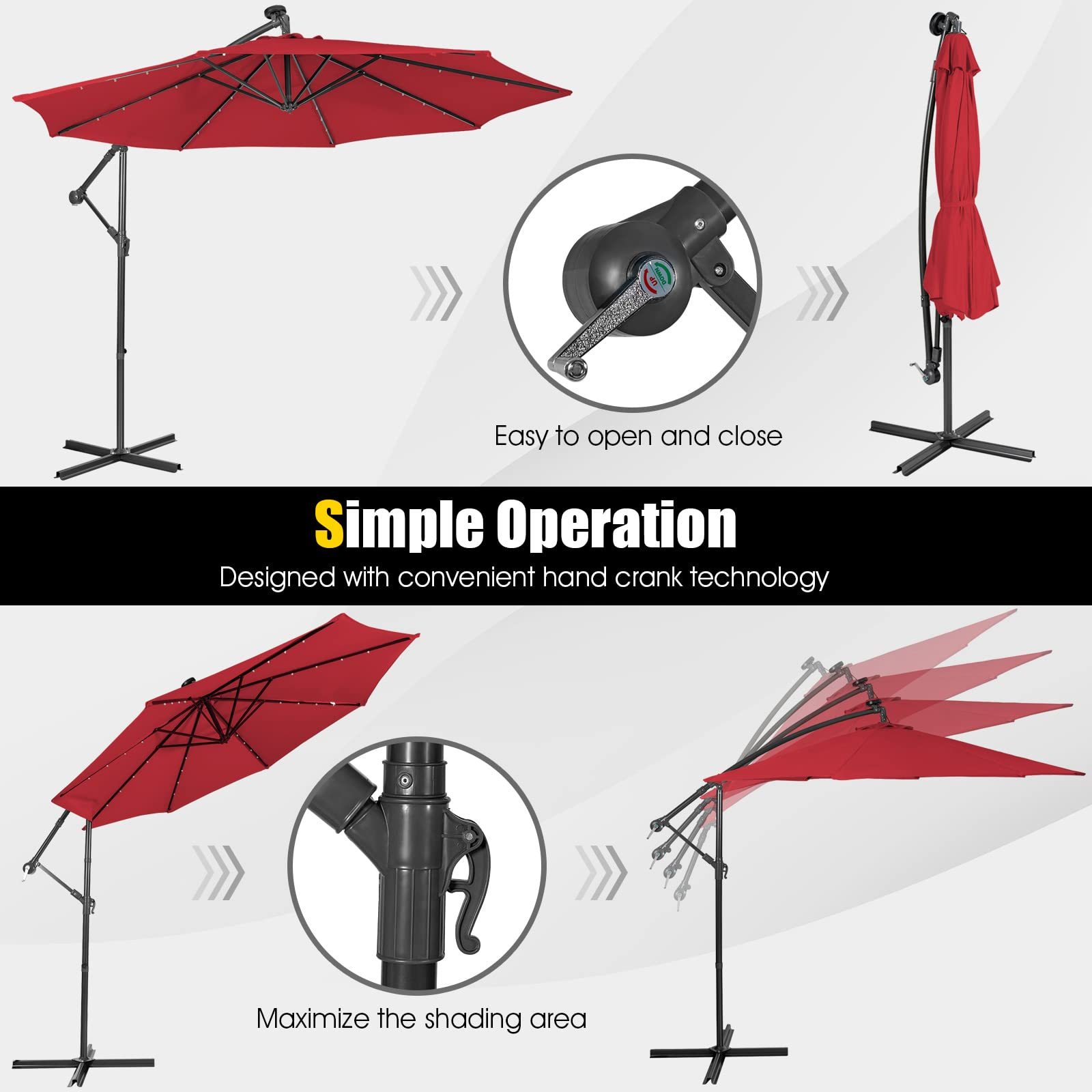 Tangkula 10 ft Cantilever Umbrella w/32 Solar-Powered LED Lights, Functional Tilting System & Hand-Crank Mechanism