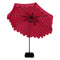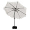 Our 10 ft large solar patio umbrella is equipped with a high-efficiency solar panel, 32 LED lights on the ribs, which could automatically charge during the day and illuminate your nights with a cozy glow, easily managed by a user-friendly switch for perfect ambiance. The canopy provides up to 79 sq.ft of comfortable shade and pivots to follow the sun thanks to a smart push-button tilt mechanism, while the convenient crank handle ensures smooth opening and closing. Supported by an ultra-stable weighted base filled with dual sandbags for up to 88 lbs and reinforced with 8 heavy-duty metal ribs plus an air vent to reduce wind pressure, this outdoor table umbrella stands strong in breezy conditions. Its premium polyester fabric resists drizzles and tearing, with ruffled edges that add a touch of chic, and the 2-part assembly makes setup and storage remarkably simple, ensuring it becomes the centerpiece of your patio, garden, or poolside retreat.