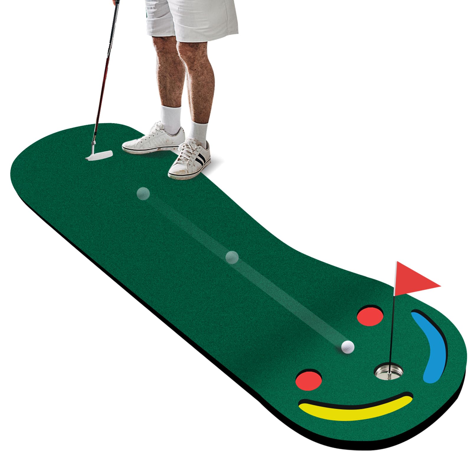 - Improve Putting Skill: Enhance your putting gameplay skills to the next level with our multi-functional practice putting green mat. The multi-hole design offers different training options from different angles and distances, and the slight incline helps develop firm stroke for beginners.