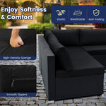 - Enjoy Softness & Comfort: With totally 9 armless and corner sofas, the patio set is perfect for family or friend gatherings. Plus, each seat is equipped with seat and back cushions featuring elastic and high-density sponge. And the breathable and anti-fading cushion covers are designed with smooth zippers for easy maintenance.