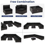 Crafted with high-quality PE wicker, this stylish conversation set is both elegant and durable. All the 10 pieces are firmly supported by heavy-duty metal frame, ensuring high-level sturdiness. And the sofa fastener clips ensure stability and a cohesive look. In addition, the seat and back cushions provide exceptional comfort. And the zipper design makes the cushion covers easy to remove and wash. Apart frame that, the free combination of the sofa set makes it a perfect addition to create a personalized outdoor oasis for relaxation and entertaining.