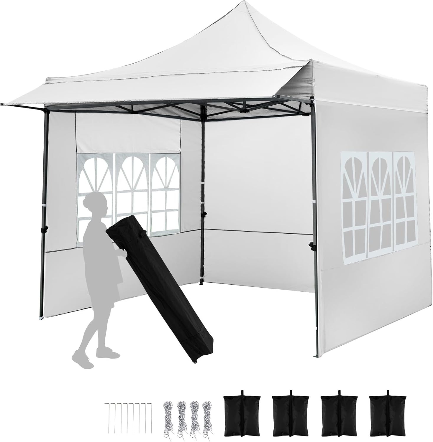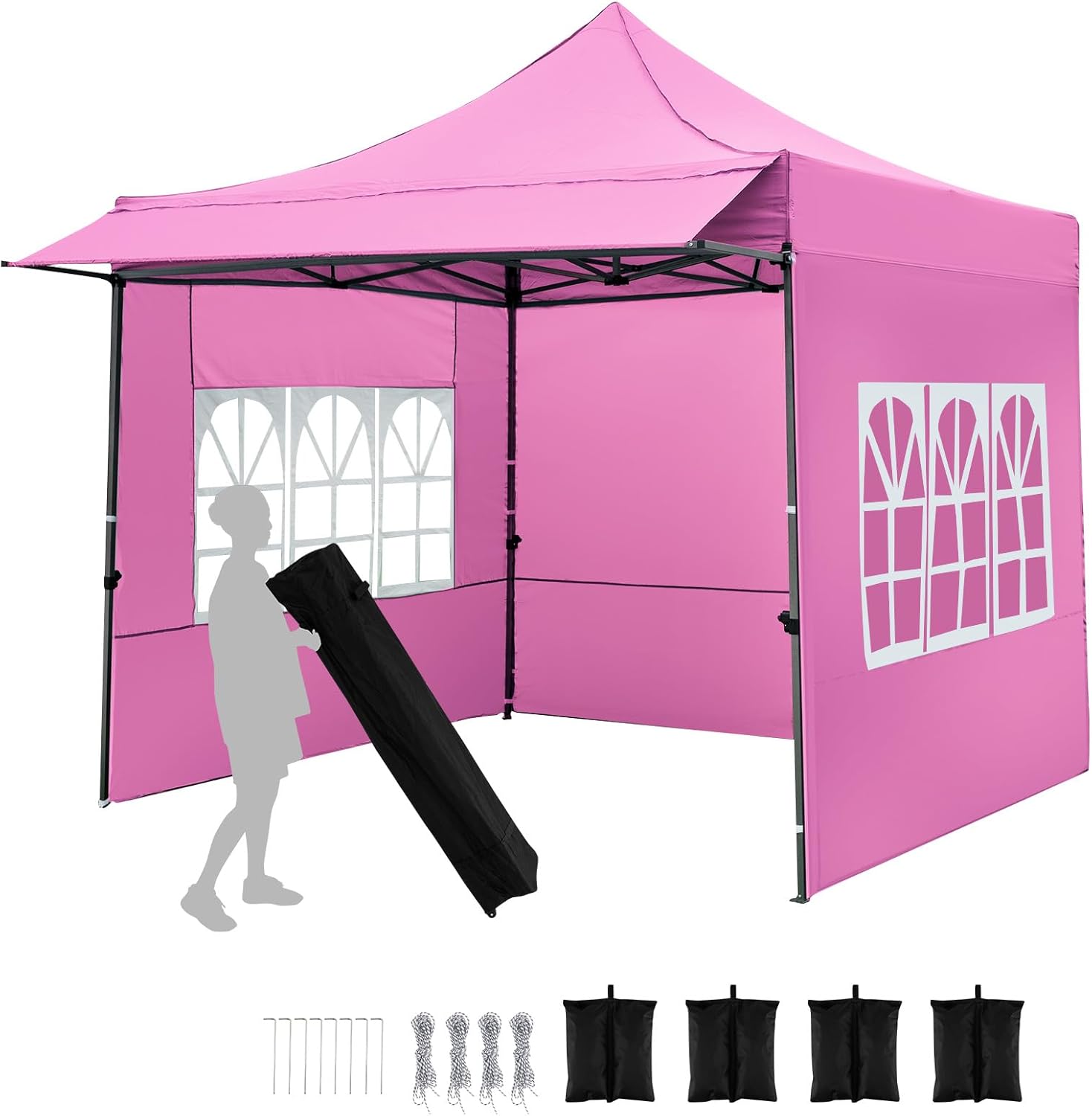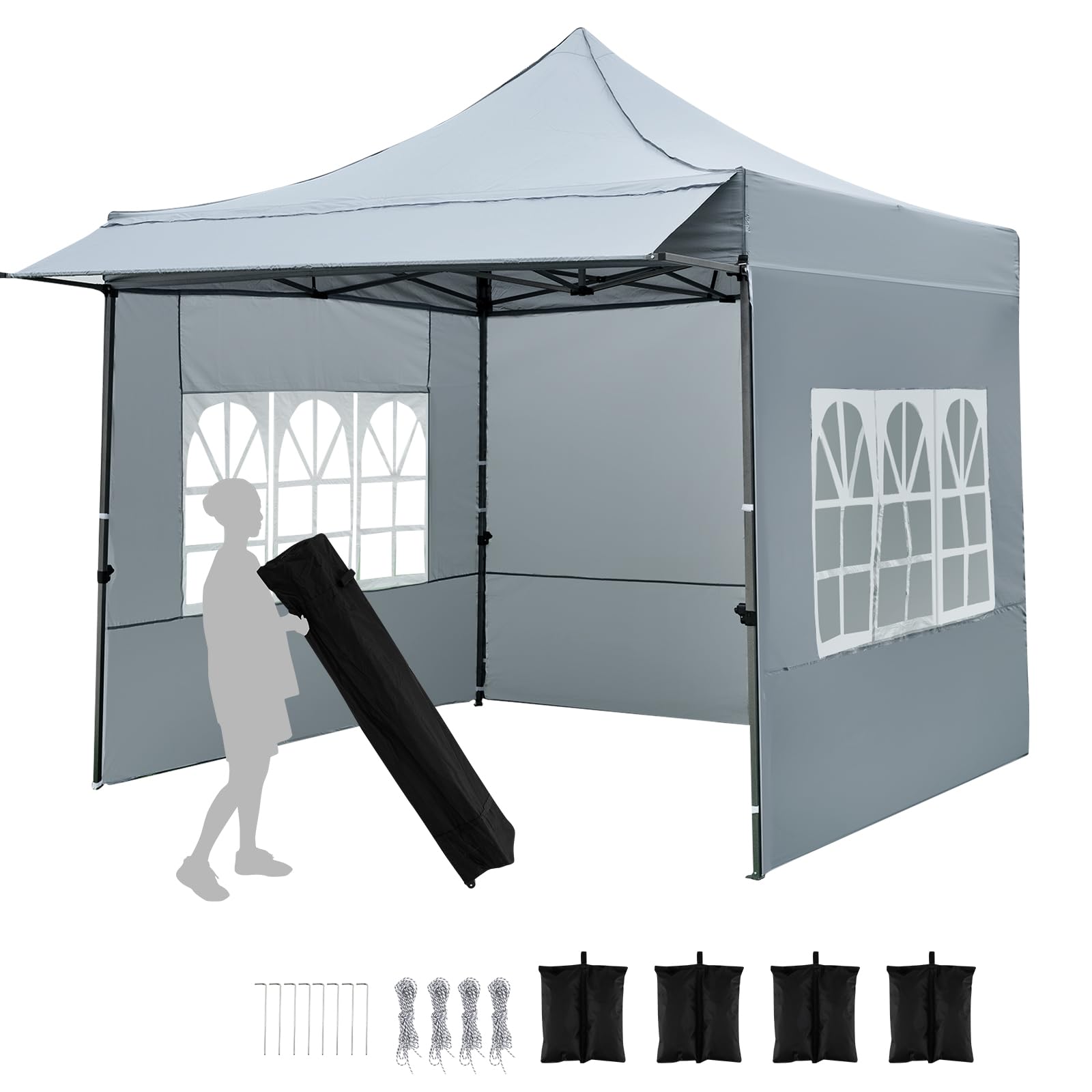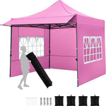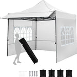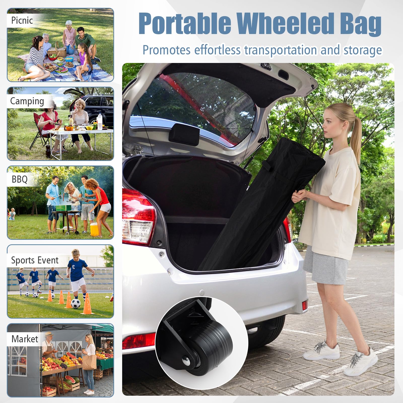 Designed for convenience, the pop-up canopy tent features 3 easily detachable sidewalls, allowing you to adapt the space to your needs. A removable awning expands the shaded area, giving you more room to relax or entertain. Constructed from 420D oxford fabric, the cover is both tear-resistant and helps shield against the sunlight. The stable metal frame, enhanced with reinforced truss plates, resists bending and deformation. Furthermore, secure anchoring is provided by sturdy stakes, wind ropes, and anchor bases, while sandbags (sand not included) offer improved wind resistance. With 3 adjustable heights and hassle-free pinch-free thumb buttons to lock the frame, setup is effortless. Also, the wheeled storage bag makes transportation a breeze. Plus, a transparent window brings a stylish touch and brightens the space. Therefore, the outdoor commercial tent is perfect for picnics, markets, parties, or sporting events.