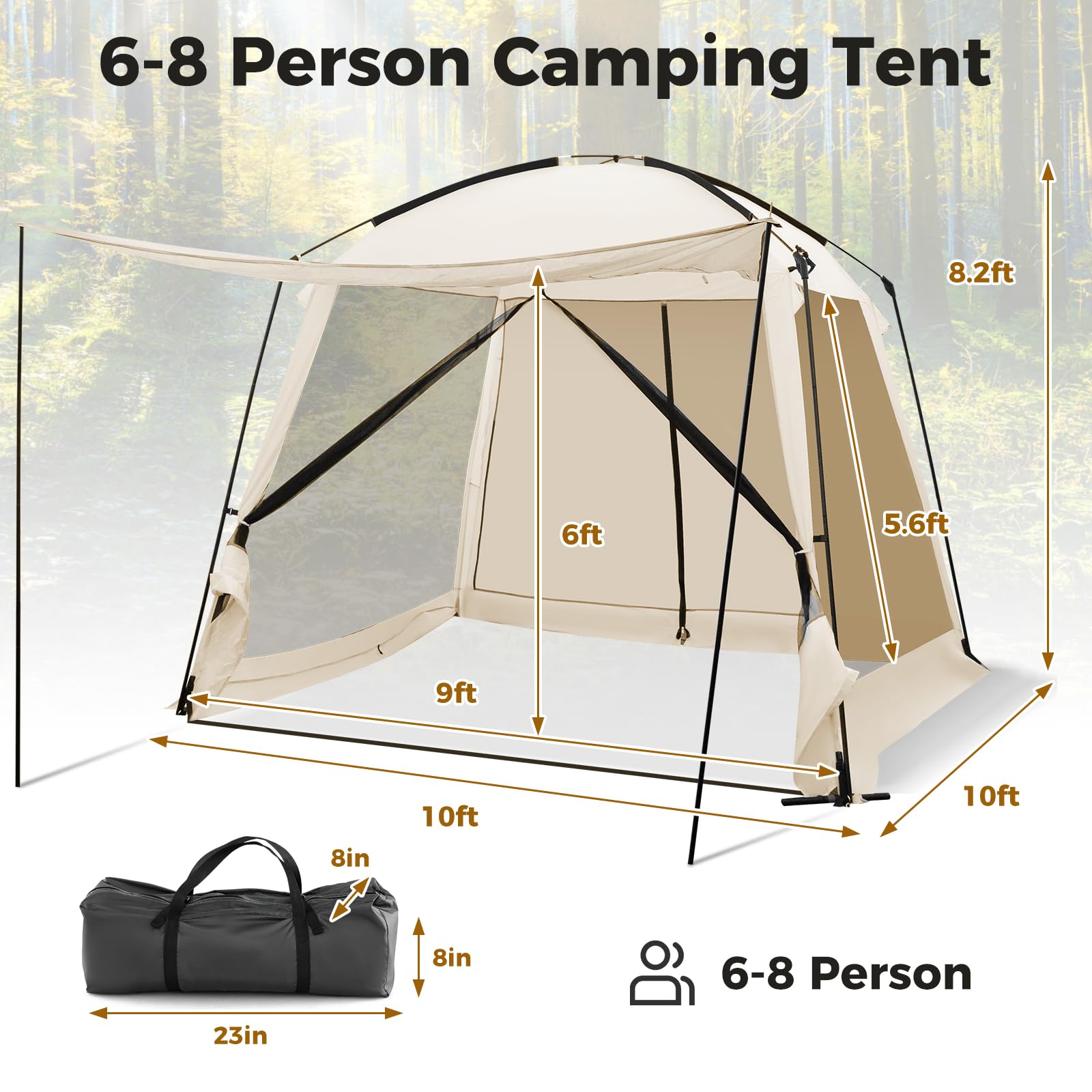 - Spacious Space & Extra Vestibule: The 10ft x 10ft x 8.2ft screen house is designed to accommodate 8-10 individuals to move around freely, making it perfect for family camping trips or large group gatherings. Additionally, the screen room tent features vestibule design to expand your activity area.