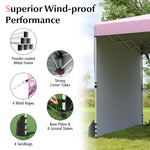 4 wind ropes & 4 ground stakes, base plates and 8 ground stakes firmly anchor the canopy tent