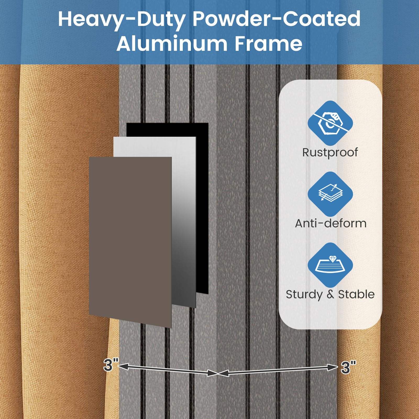 Supported by a robust aluminum frame, rustproof, reliable, sturdy, built to last