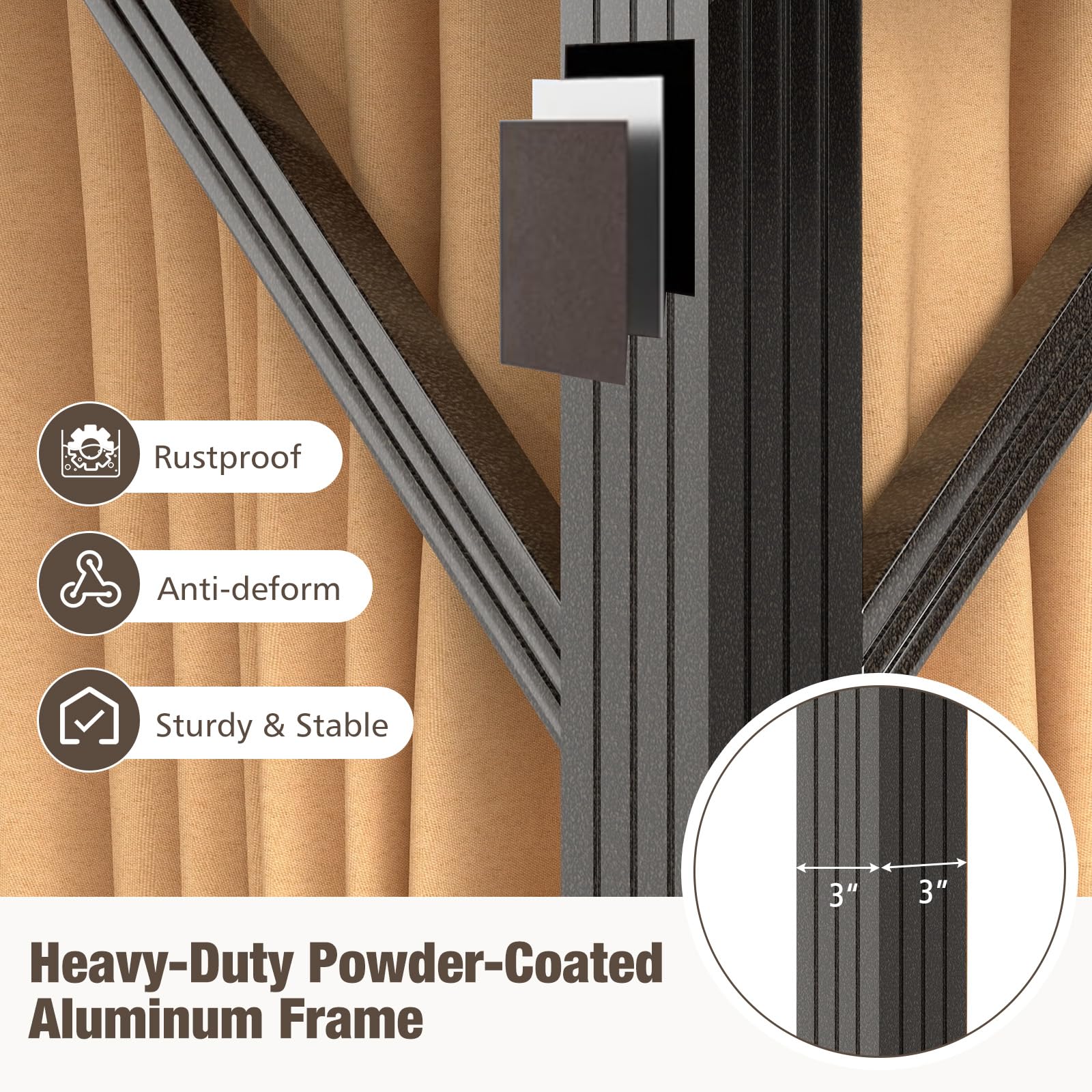 Supported by a robust aluminum frame, rustproof, reliable, sturdy, built to last