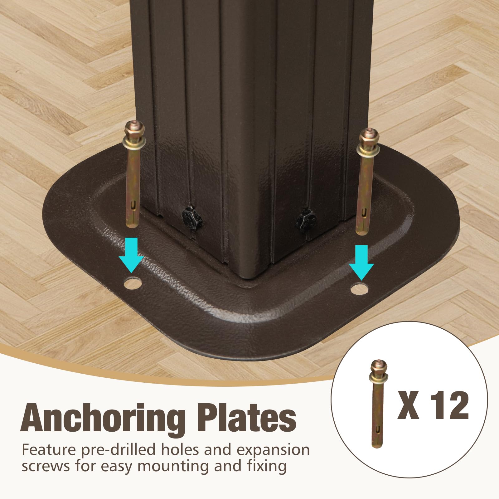 The expansion screws help fix the gazebo on solid ground for better wind resistance