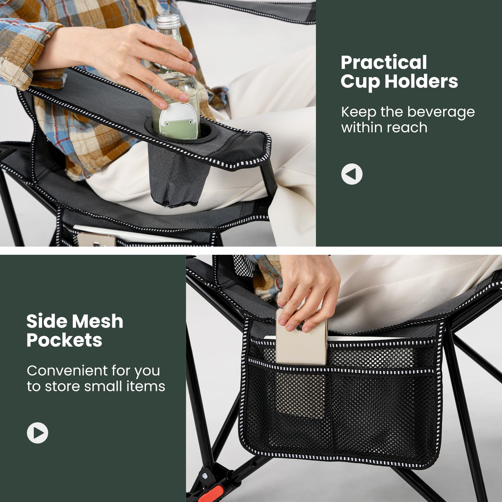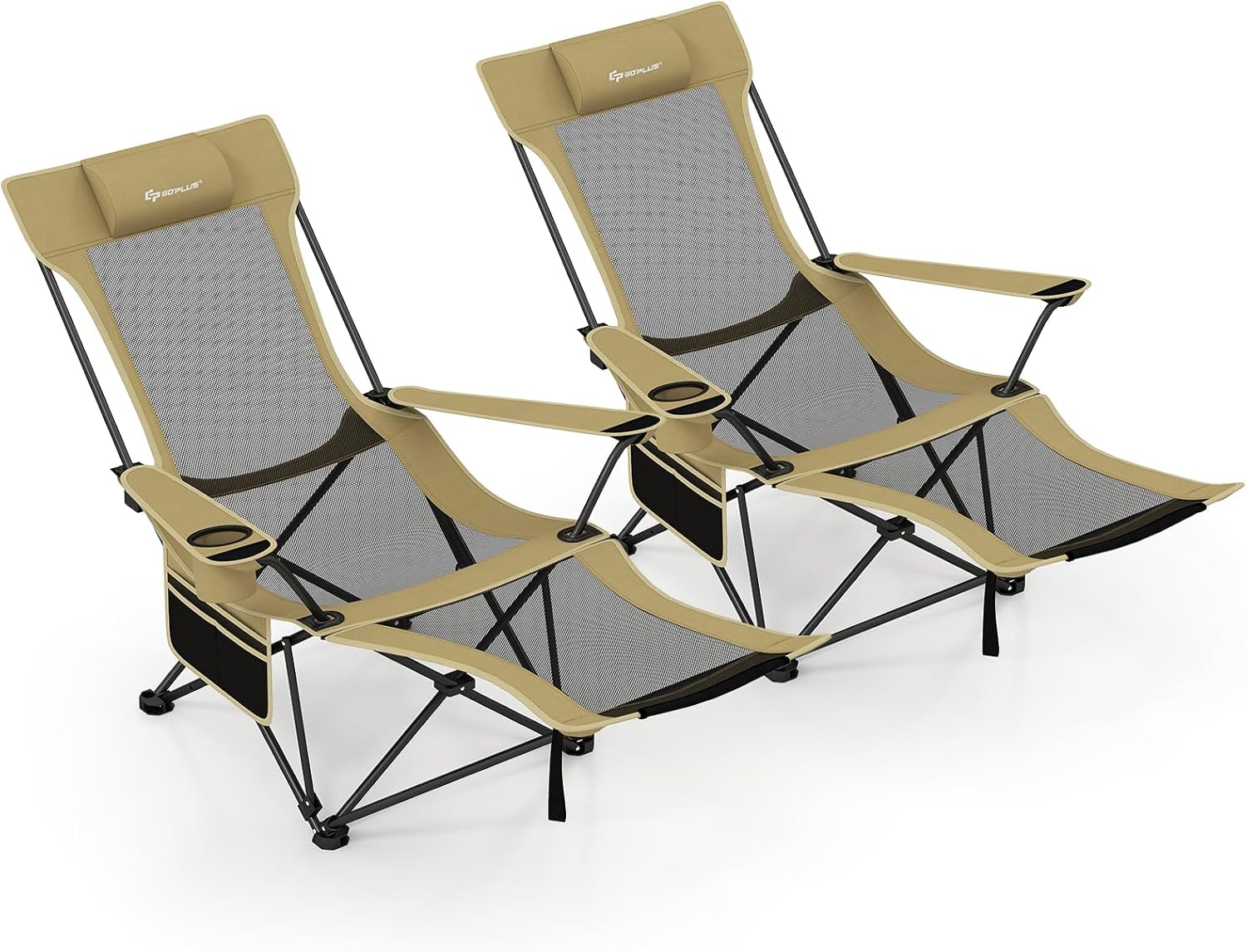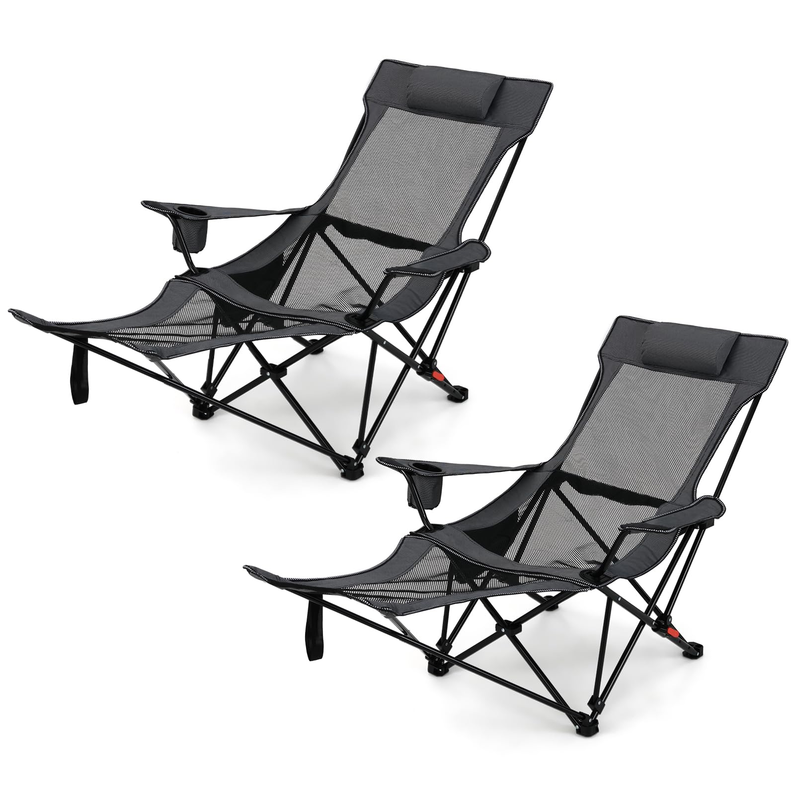 Are you looking for the ultimate outdoor companion for your camping, fishing, or beach adventures? Our foldable reclining camping chair is the perfect solution! This foldable reclining camping chair features a 2-in-1 design with a detachable footrest, allowing you to customize it to your needs. It has a 4-position adjustable backrest and a comfy headrest for ultimate relaxation. The chair also offers ample storage space with practical cup holders and side mesh pockets. When not in use, this camping chair folds down to a compact size and fits neatly into the included carry bag, so you can take it anywhere you want. From camping trips to fishing expeditions or beach parties, this lightweight mesh recliner is your go-to for versatile and comfortable outdoor seating.
