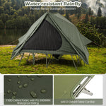 Are you looking for a versatile outdoor solution that can provide comfort and protection? This multifunctional camping cot tent combo offers the perfect balance of flexibility and durability. Use the 2-person camping cot or tent alone, or combine them securely with 4 straps to create your ideal outdoor sleeping arrangement. Besides, the water-resistant rainfly, made with 150D Oxford fabric and a PU 2000MM waterproof rating, ensures you stay dry and protected from the elements. Enjoy good air ventilation through breathable mesh windows while keeping the interior fresh and comfortable. The cot's 600D Oxford fabric mat, sturdy metal legs, and non-slip foot pads provide stability and can support up to 660 lbs. Plus, wind ropes and stakes are included for added reliability in windy conditions. Whether you're camping, heading to the beach, or relaxing in the backyard.