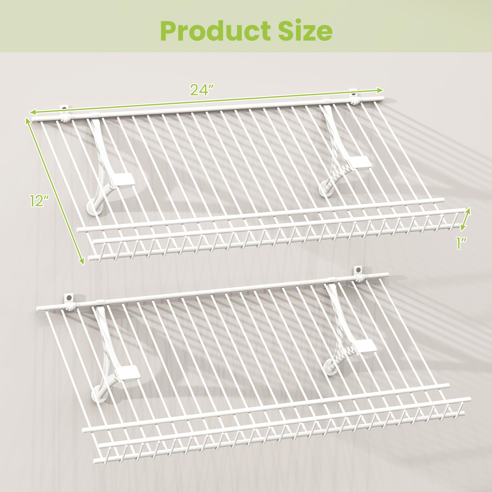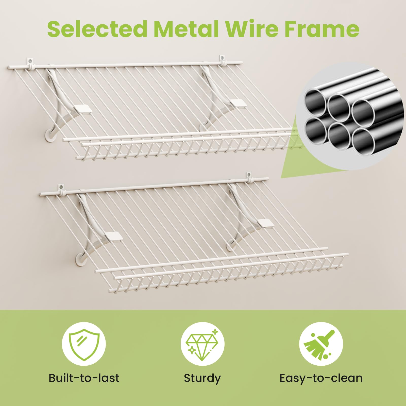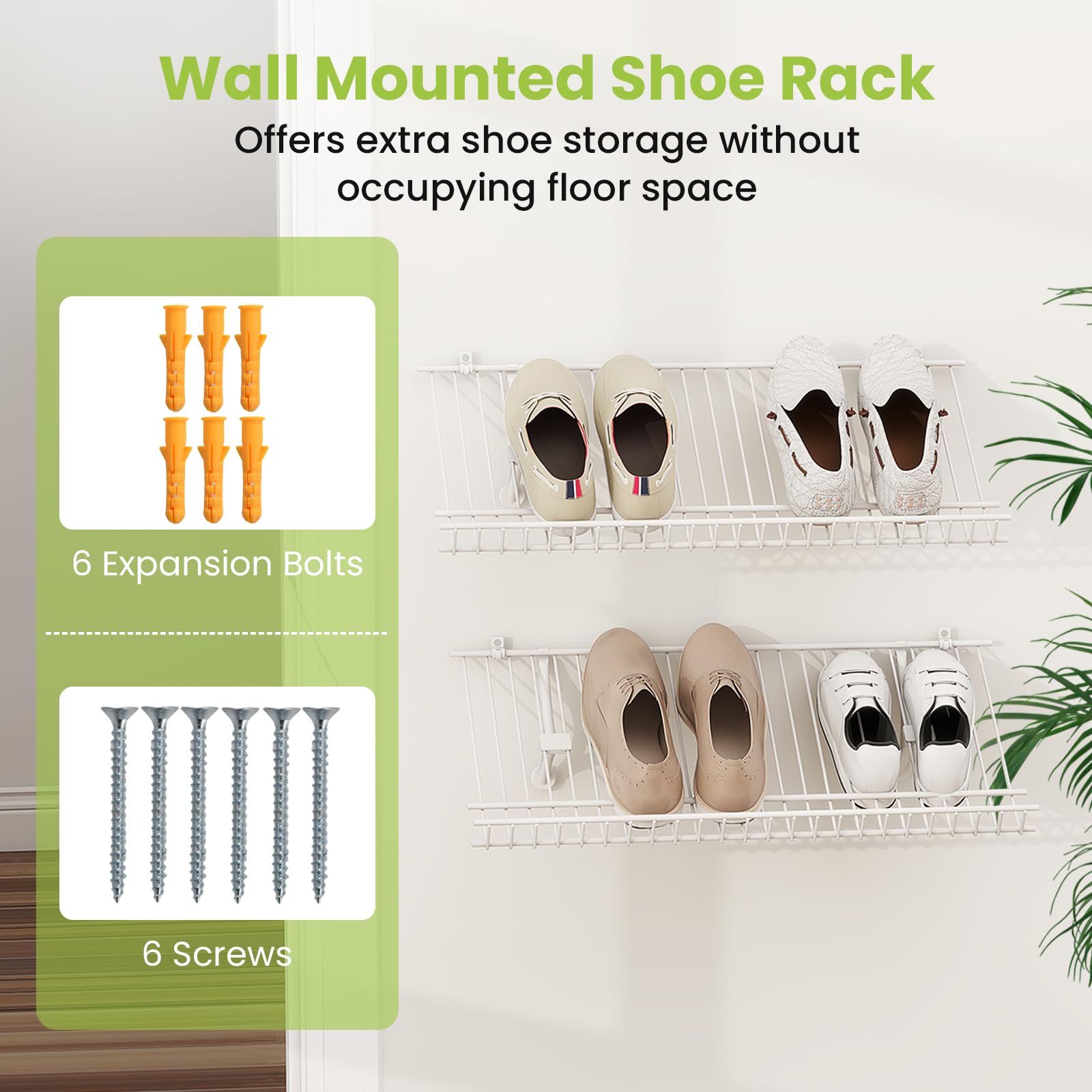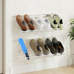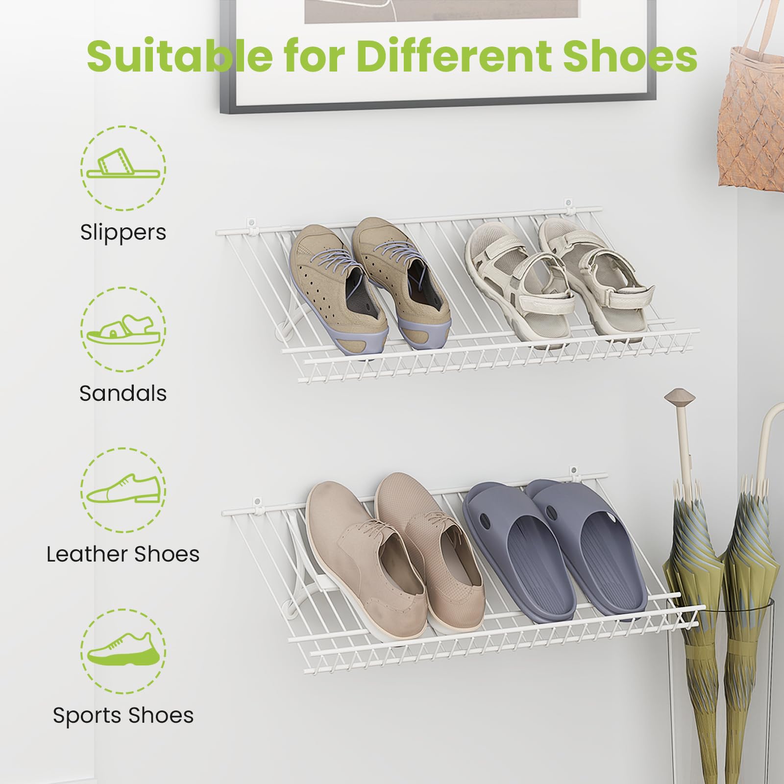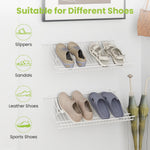 Keep your shoes neatly organized with our wall-mounted shelving unit! The sloping shoe racks can be fixed at any height for convenient reach. The wall mounting accessories are included for space-saving installation. They won’t occupy any floor space, making them perfect for small spaces. These shoe racks can be widely used in entryways, hallways, bedrooms, and more. The premium metal wire frame and solid brackets keep the shelves reinforced. Furthermore, the heightened edges prevent the shoes from slipping off.