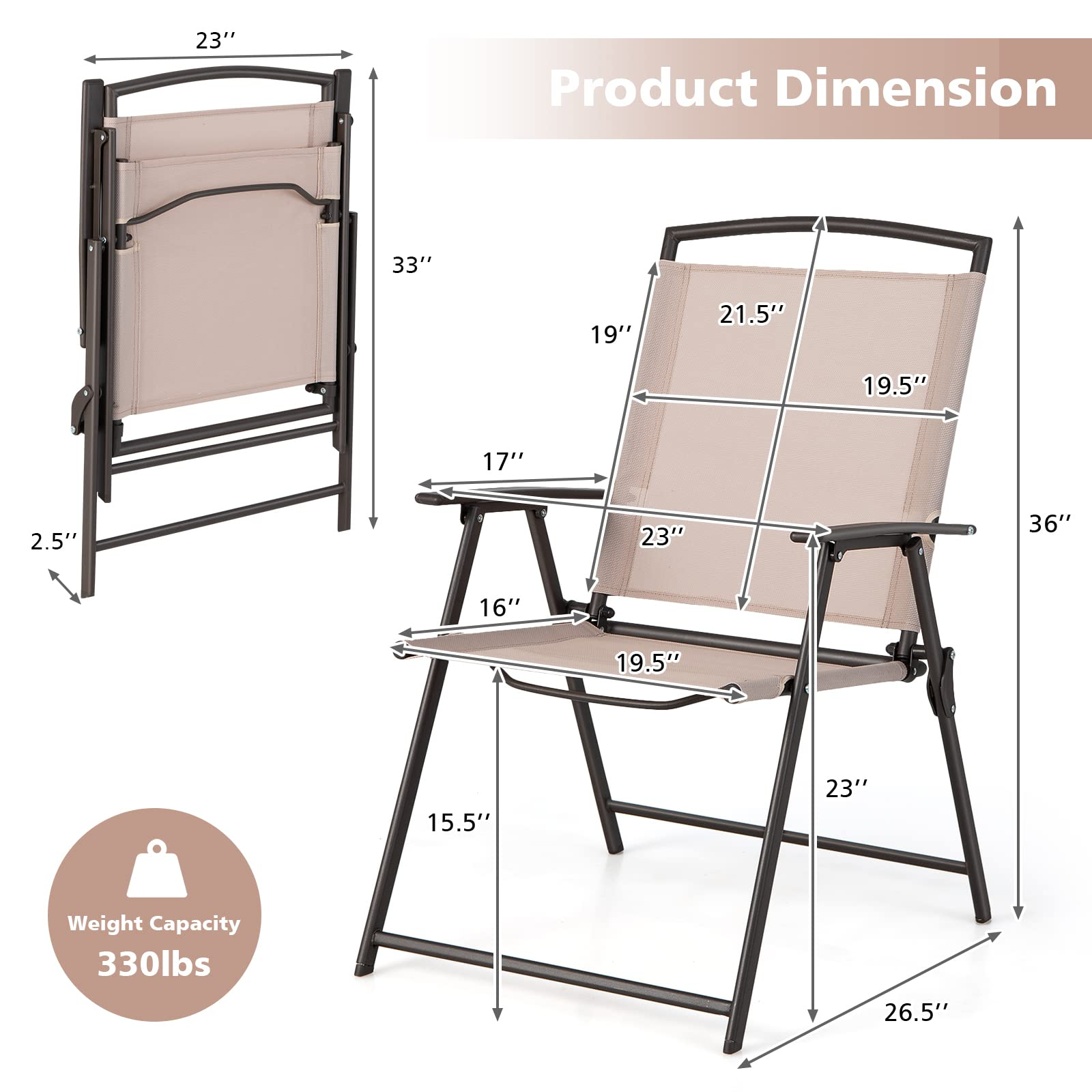 Unfolding Dimension of Each Chair: 26.5" x 23" x 36" (L x W x H)