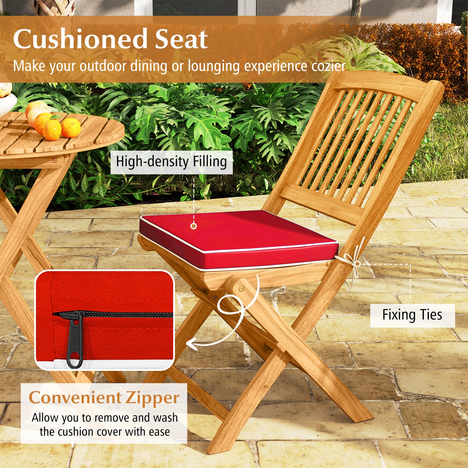 - Cushioned Seat: Each outdoor dining chair comes with soft cushions, enhancing your seating experience. The fixing ties securely attach them to the chairs, preventing any sliding or slipping. Plus, the cushion covers are removable and machine washable.