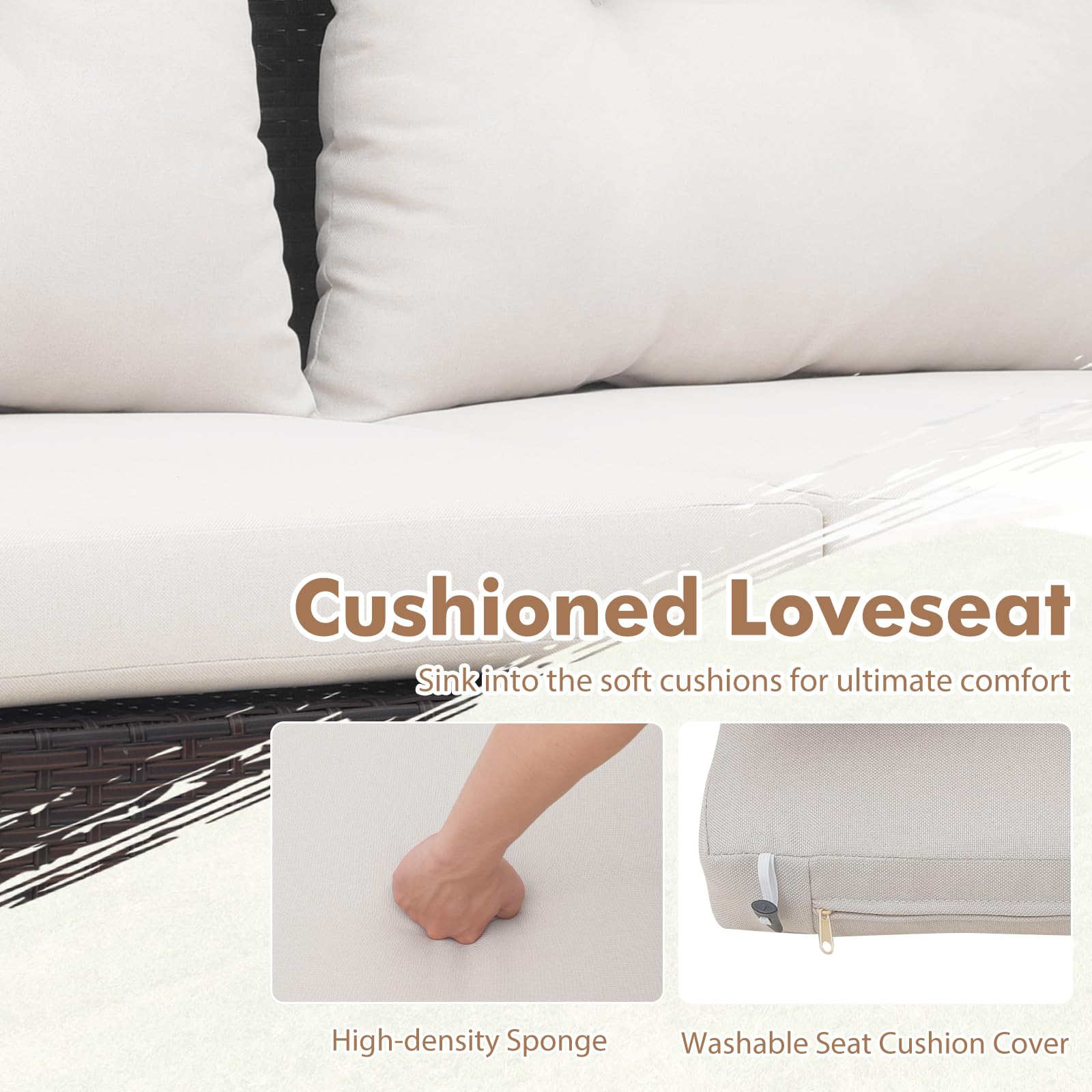 - Durability Meets Stability: Crafted from fade-resistant PE rattan and heavy-duty metal frame, this patio loveseat ensures outdoor durability and strong loading capacity up to 800 lbs.