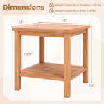 Constructed from premium acacia wood, this accent bistro table combines sturdy build quality with an attractive wood grain finish. Featuring a 2-tier design, the square end table provides extra space for keeping items like books, plants, or outdoor accessories organized and easily accessible. Whether placed beside a lounge chair or used as an accent piece, it contributes both function and style to your indoor or outdoor environment.