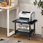 Built from a high-strength board with a sturdy metal frame, it offers superior stability and can support up to 143 lbs/65 kg, ideal for heavy printers and office essentials. This rolling printer cart not only provides a versatile two-tier storage solution perfect for printers, books, and decorations, but also features smooth mobility with 360-degree swivel wheels, two of which are lockable for stable positioning. Designed to fit neatly under most desks, it maximizes space efficiency while its sleek, clean design enhances any office, study, or living room decoration. The easy-to-clean surface and rounded corners ensure both convenience and safety, making it a practical yet attractive addition to any setting.