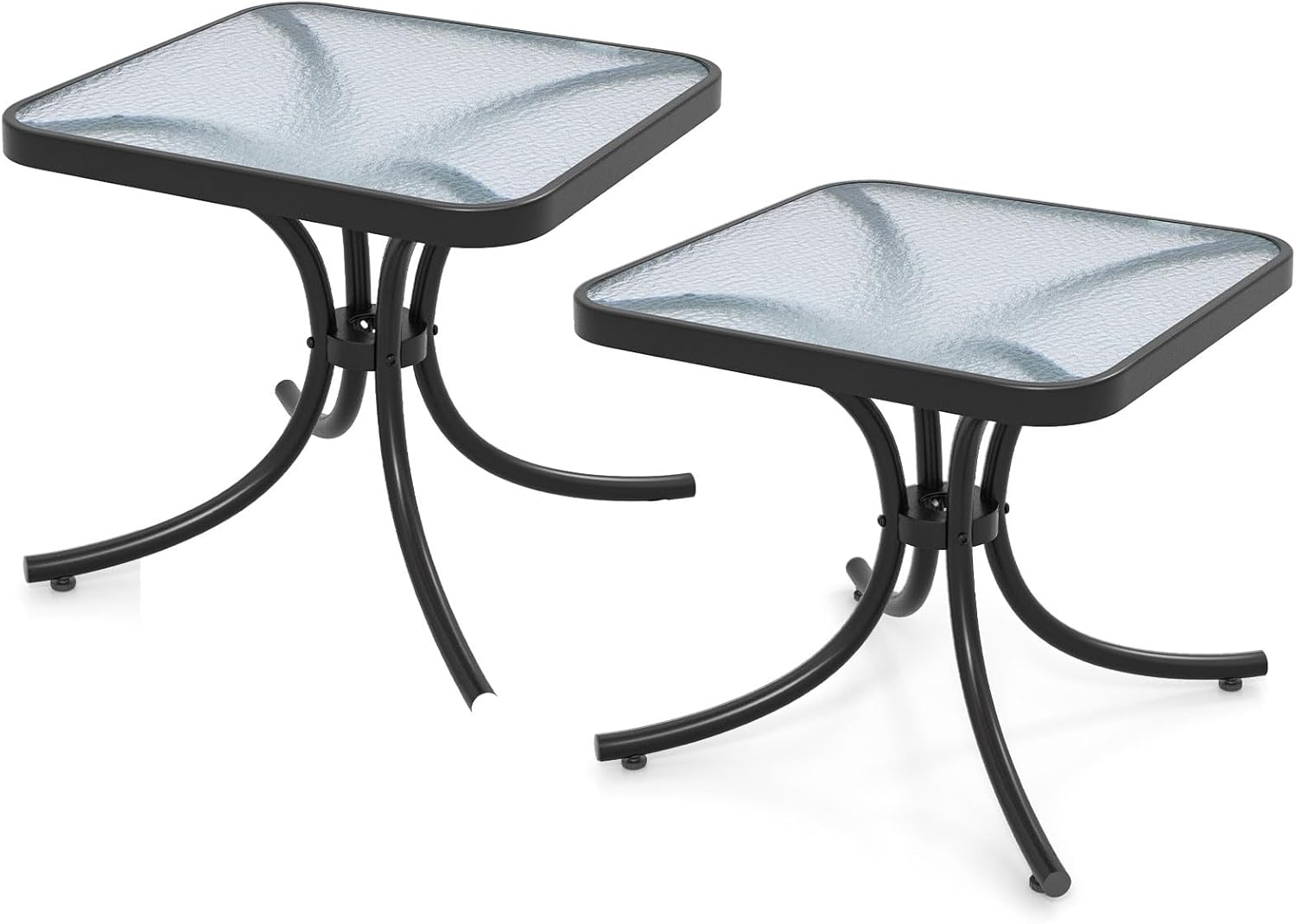 - Sturdy Tempered Glass Top: This patio side table features a sturdy tempered glass tabletop, providing high strength and safety. The smooth surface is burr-free and easy to maintain while the curved edges prevent accidental scratches.