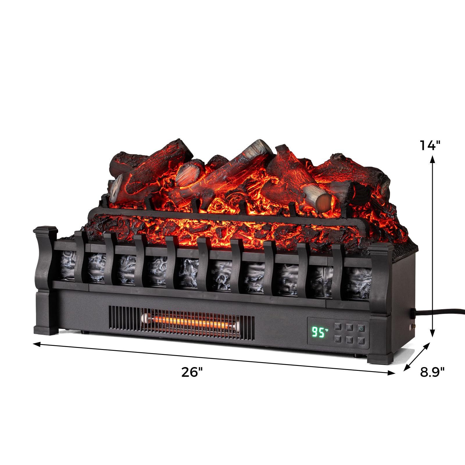 This freestanding electric log heater offers efficient warmth thanks to an advanced infrared quartz element that generates 5,120 BTU, swiftly heating rooms up to 1,000 sq. ft. Featuring 5 adjustable flame colors and brightness levels, the electric fireplace log creates a cozy and immersive fire display all year round. Designed for effortless convenience, this electric heater can be controlled via an intuitive app, remote control, or onboard panel, and seamlessly integrates with Amazon Alexa and Google Assistant for hands-free operation. In addition to its quiet performance, the infrared heater includes CSA-certified safety features and an adjustable timer to ensure a safe and peaceful environment.
