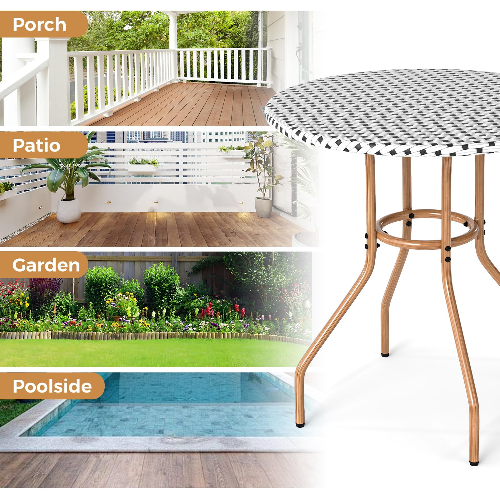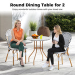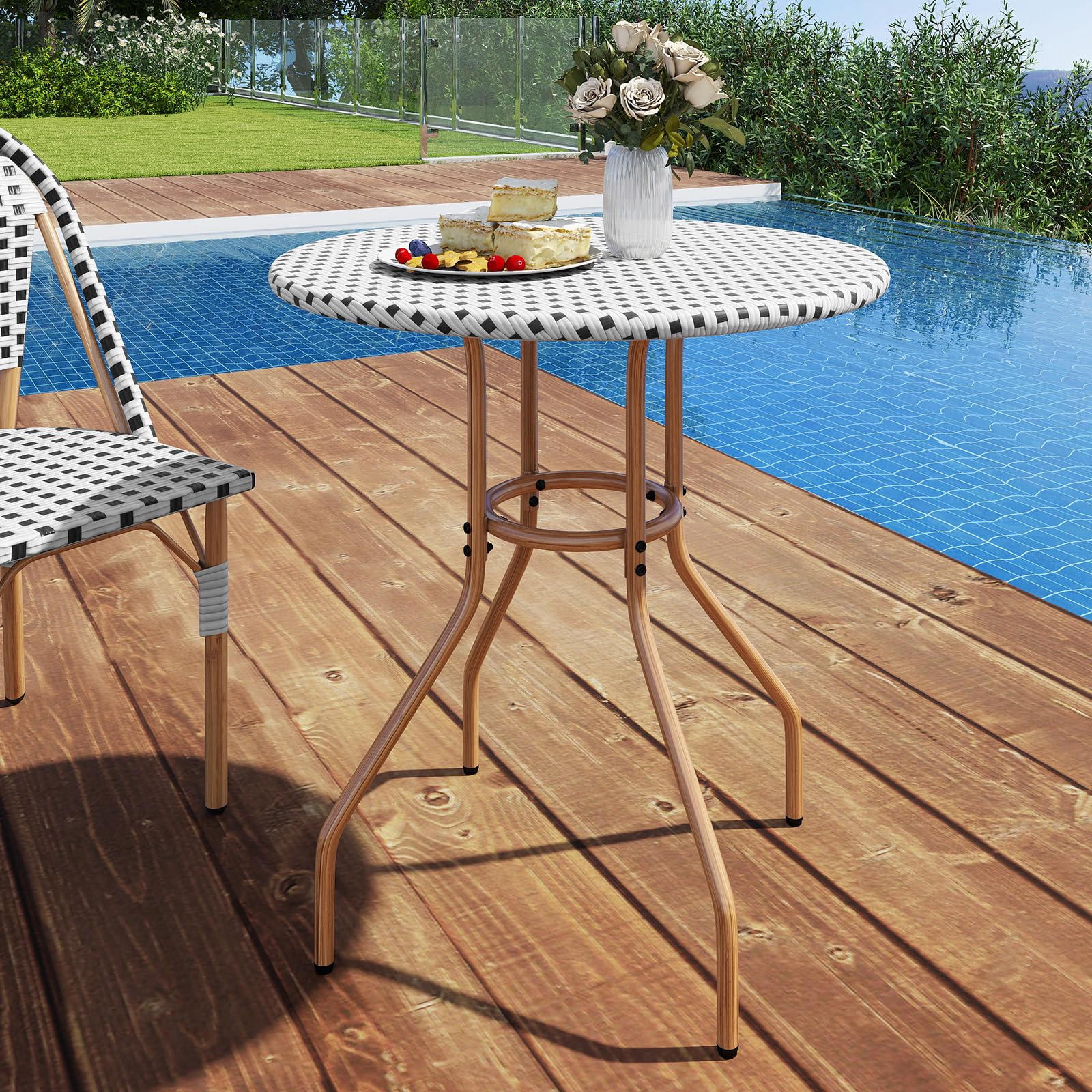Crafted with hand-woven rattan, this patio dining table does not just exude elegance – it promises enduring durability. The retro design lends a stylish and sophisticated vibe, making this outdoor dining table ideal for your garden, patio, or poolside setting. The gracefully curved legs ensure both stability and style. Enhanced connections and adjustable foot pads provide added steadiness, ensuring your outdoor dining experience is both comfortable and secure. Ideal for savoring unforgettable moments outdoors, this patio bistro table is perfect for you and the one you love.