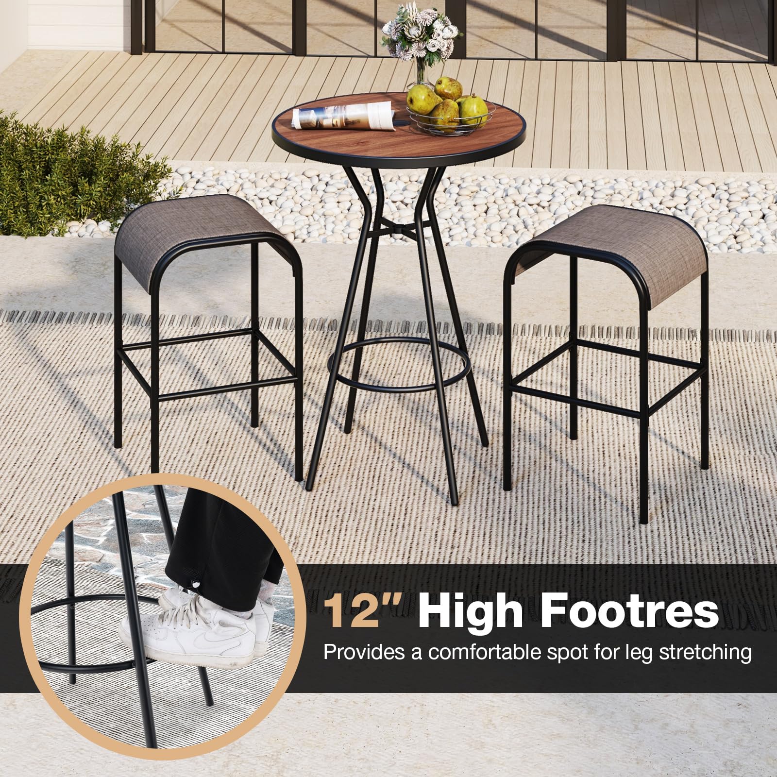 - Robust & Reliable Structure: The patio bistro table stands strong on sleek metal legs, equipped with an under-desk umbrella fixation bracket to secure your shade. Besides, the anti-slip foot pads add stability and protect your decking or patio surfaces.