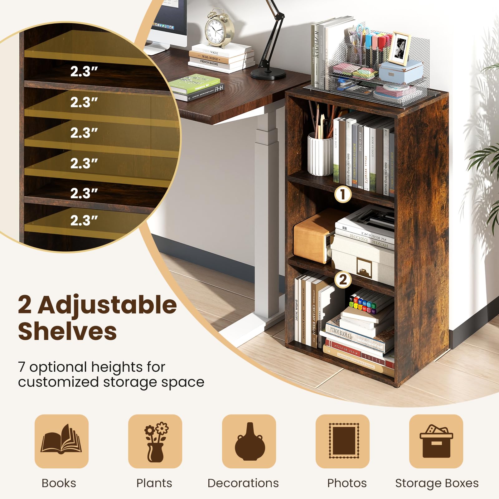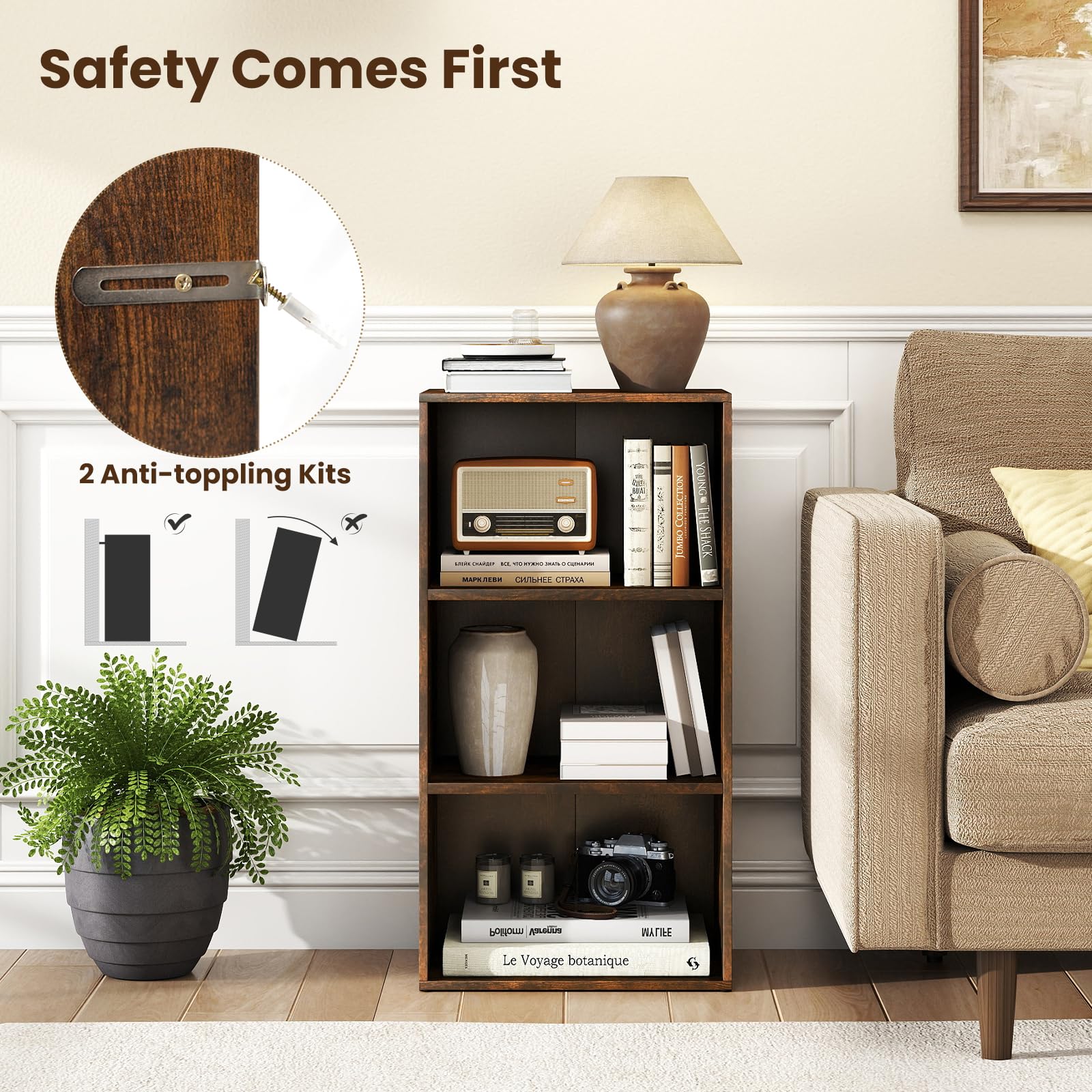Are you tired of a messy room or inconvenient storage? This open bookcase is definitely worth considering. Featuring 3-tier storage shelves, the cube bookshelf offers versatile storage options to accommodate items. Each shelf can be adjusted to different heights, allowing you to customize the layout based on your needs, whether for displaying taller books or smaller decorative pieces. Safety is also a priority with included dual anti-toppling kits, helping to secure the bookcase against wall surfaces to reduce the risk of tipping. This versatile display shelf offers practical storage solutions while adding an inviting atmosphere to your space.