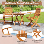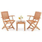 Bring natural beauty to your outdoor space with this sturdy eucalyptus wood bistro set. The set includes a table and 2 well-made patio folding chairs, and are made of premium eucalyptus wood to provide strong support and withstand extended use. The chairs feature well-designed details including curved armrests and a high back for optimal comfort, while the thoughtful slatted design can prevent water from pooling and keep seat breathable and cool. Easy to clean and perfect for any indoor and outdoor setting, this bistro set is a stylish and functional addition to your porch, garden, or poolside retreat. Enjoy relaxing in style with this versatile bistro set.