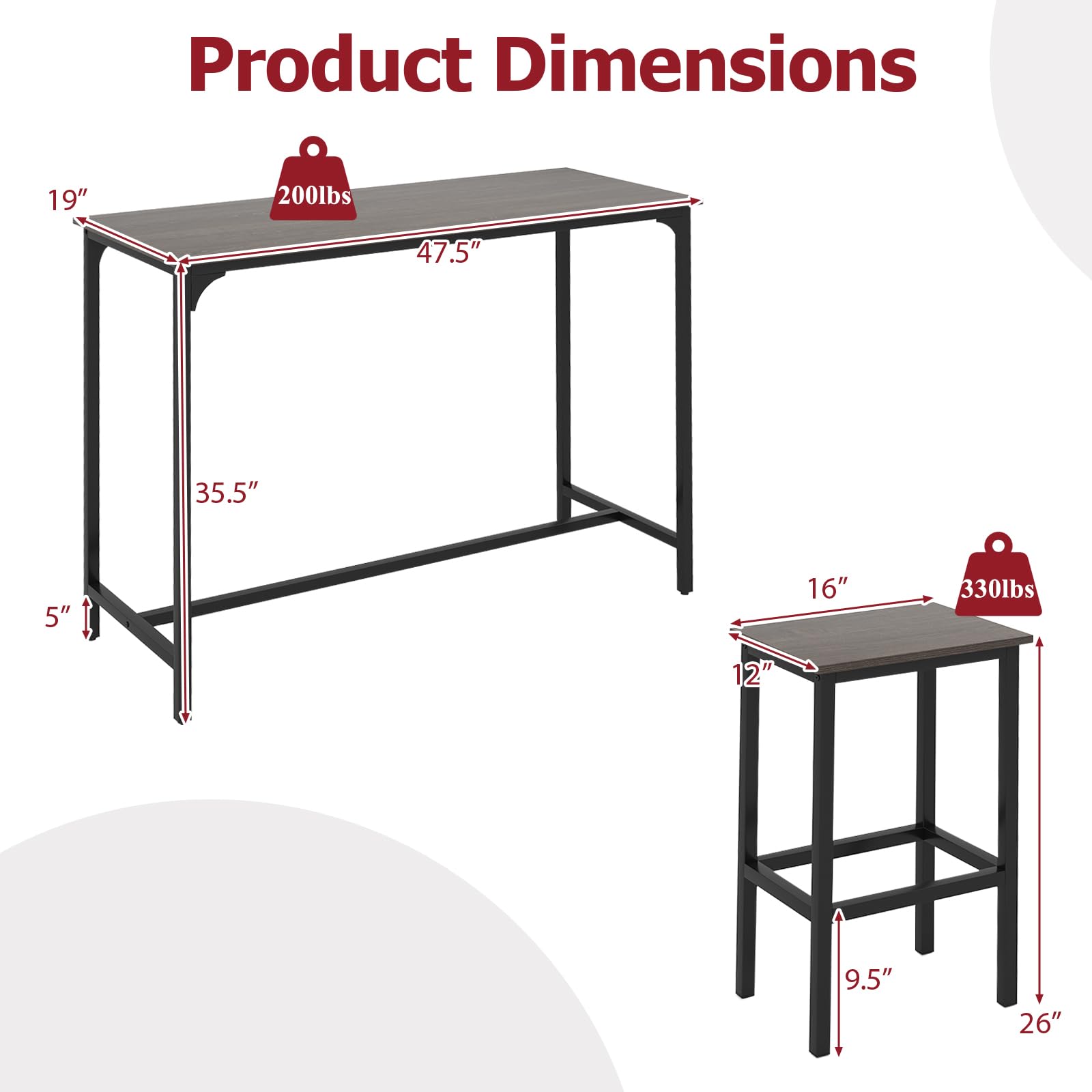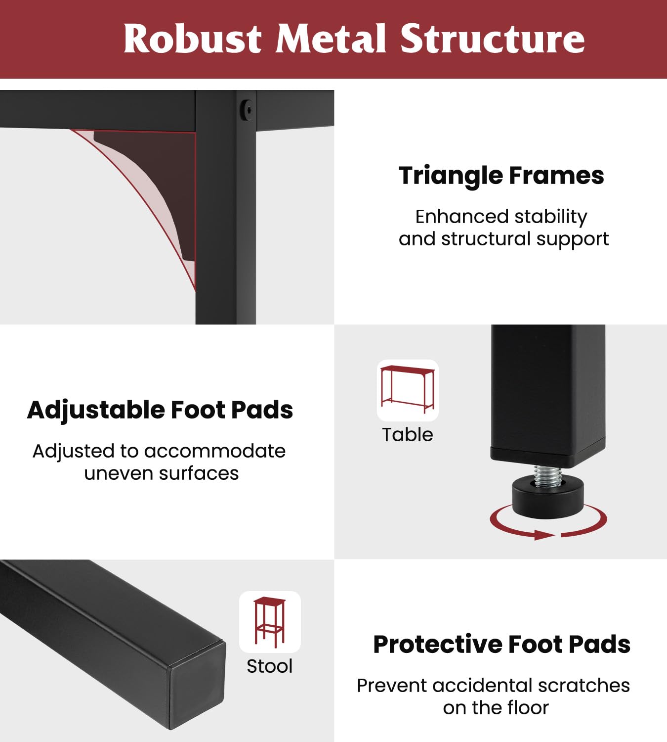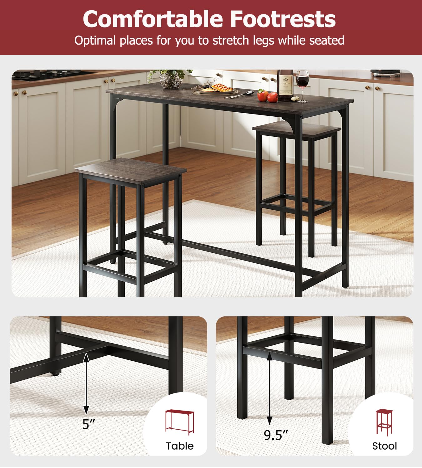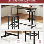 The 3 piece pub table set features a rectangular counter height table and 2 bar stools, making it ideal for intimate meals or cozy gatherings. Crafted with sturdy metal frames and reinforced with H-shaped frame, the bar table set offers exceptional stability and durability. The adjustable footpads on the table ensure that it stays level on any surface, making it suitable for a variety of spaces. Furthermore, the bar stool comes with built-in footrest, which ensures increased sturdiness and allows you to choose the optimal sitting posture. Additionally, the anti-slip footpads on the stools protect your floors from scratches. When not in use, the 2 stools neatly fit under the table, helping you save valuable floor space.