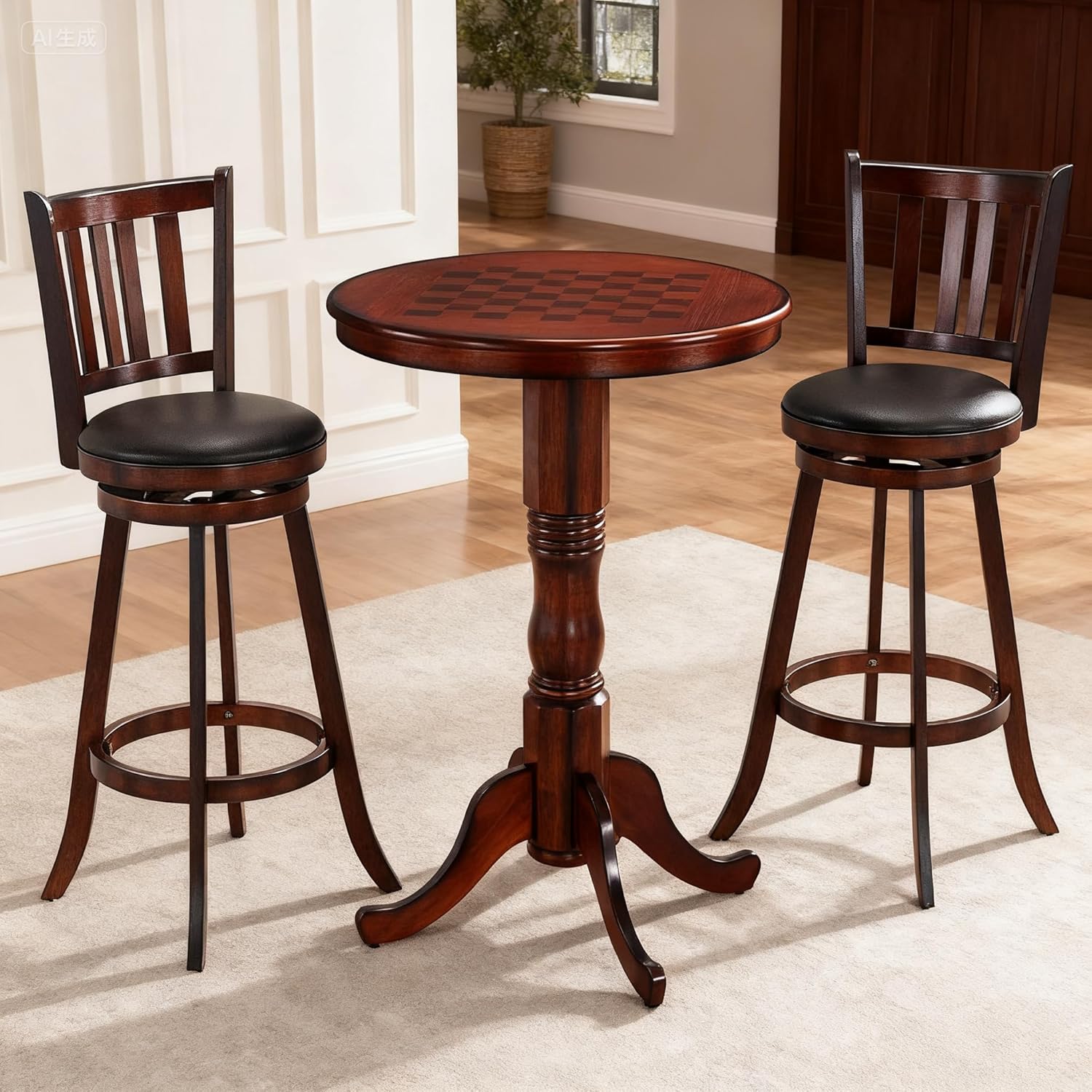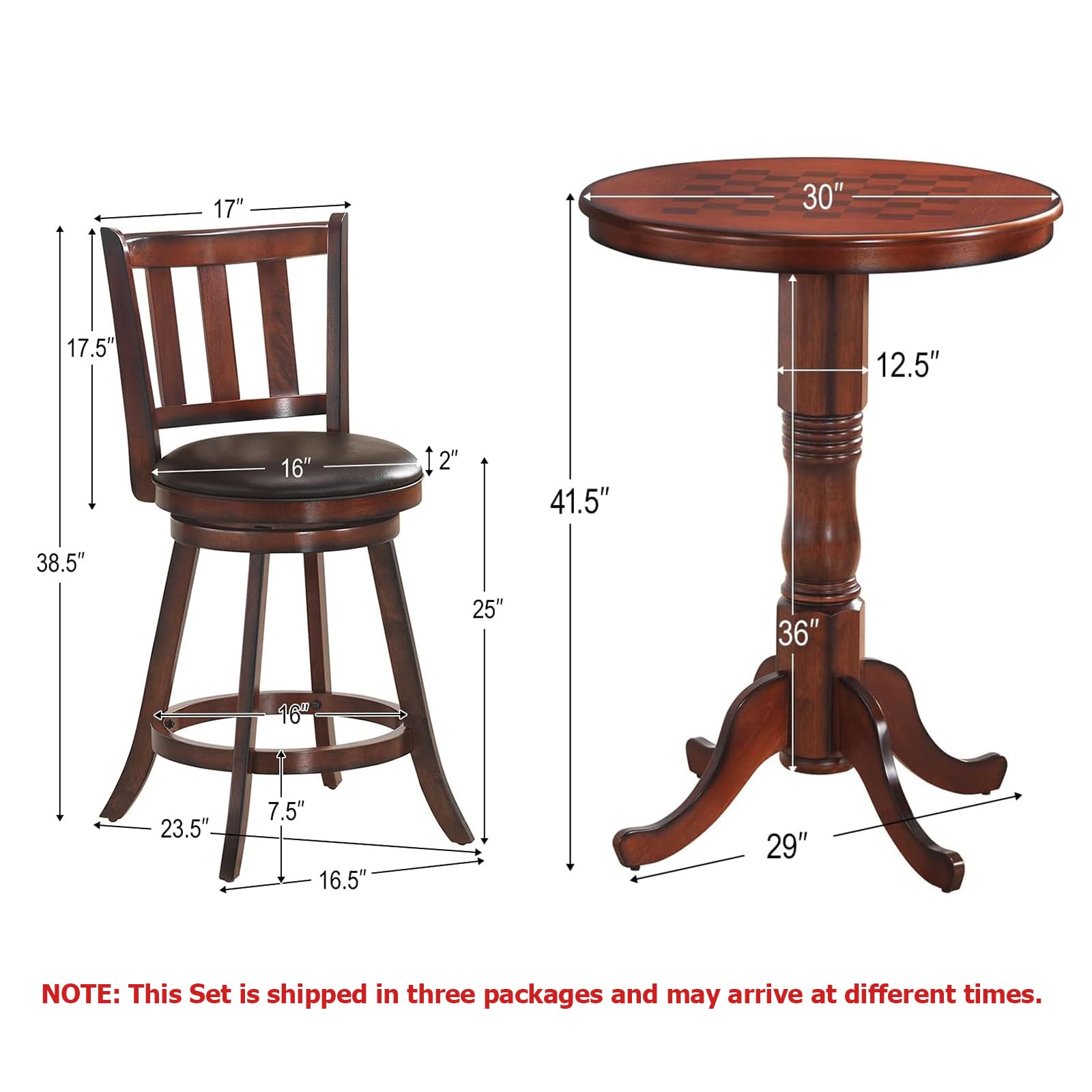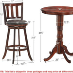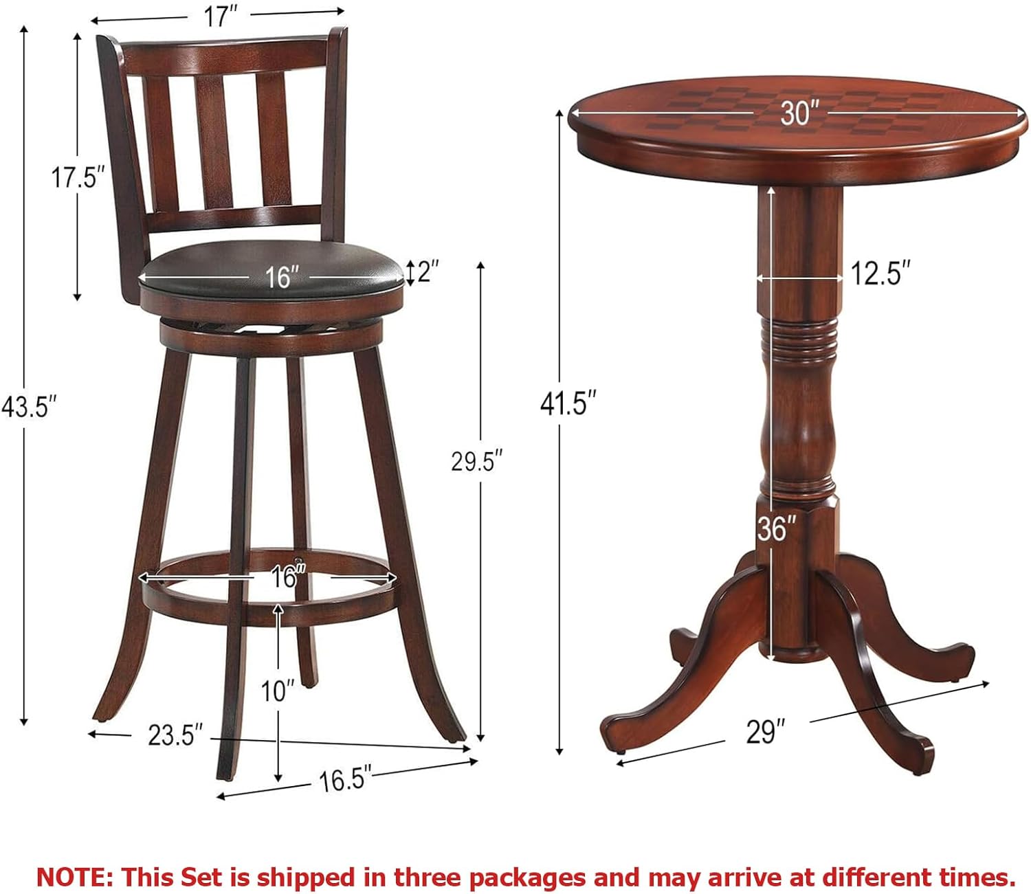 Our 30 inch pub table with pub chairs set can meet your various needs, and you can place it on the entryway, kitchen, living room, dining room, patio or other places according to your demands. This round bistro table set with classic appearance will add a sense of elegance to your space. The stable base ensures great stability, which allows you to place different items on the table. Besides, the high pedestal design is very convenient to clean, which can save your effort. The smooth surface is waterproof and easy to clean. In addition, clear instruction and necessary components help to complete the assembly quickly. This multifunctional pub table will be a great addition to your home!