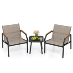 Elevate your outdoor relaxing space with this robust and stylish 3-piece outdoor chair and table set.